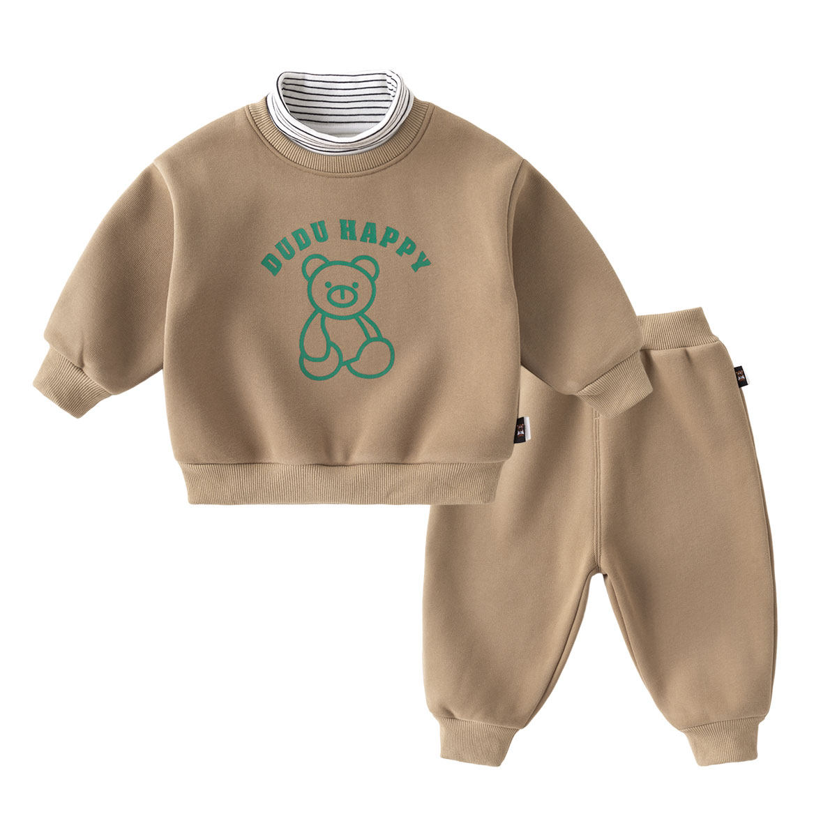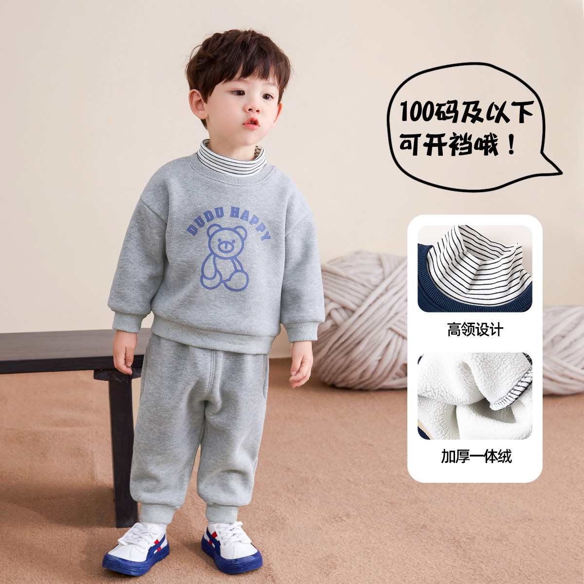 【嘟嘟家休闲半高领】男童套装加绒冬季儿童卫衣两件套冬装保暖女童童装