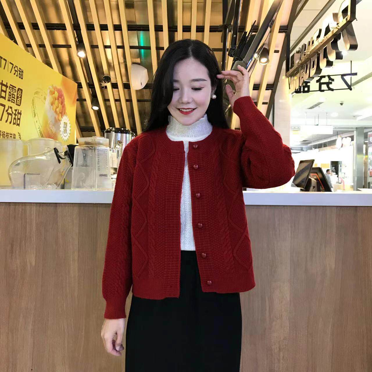 短款加厚毛衣开衫女秋冬2025新款别致复古宽松设计感麻花针织外套