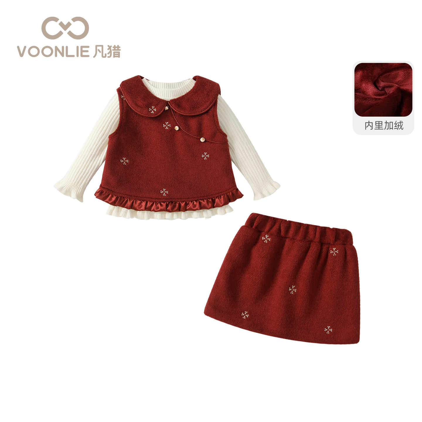 凡猎女童套装冬装2026新款洋气儿童加绒保暖衣服宝宝周岁礼服冬季