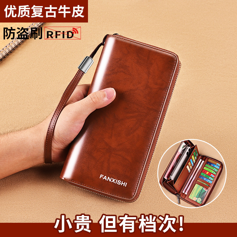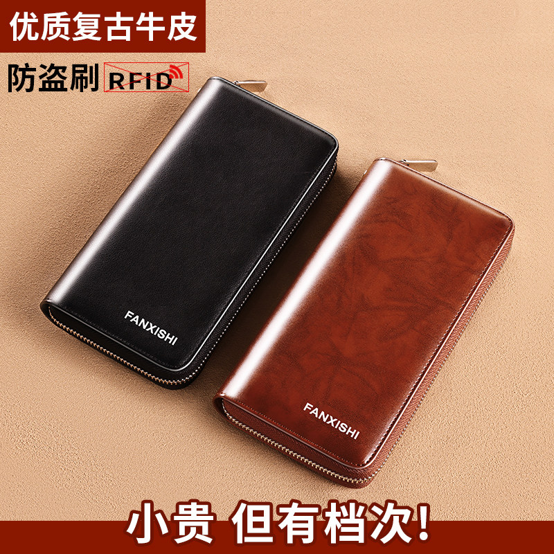 男士钱包长款真皮拉链多功能卡包牛皮2025新款男式大容量皮夹钱夹