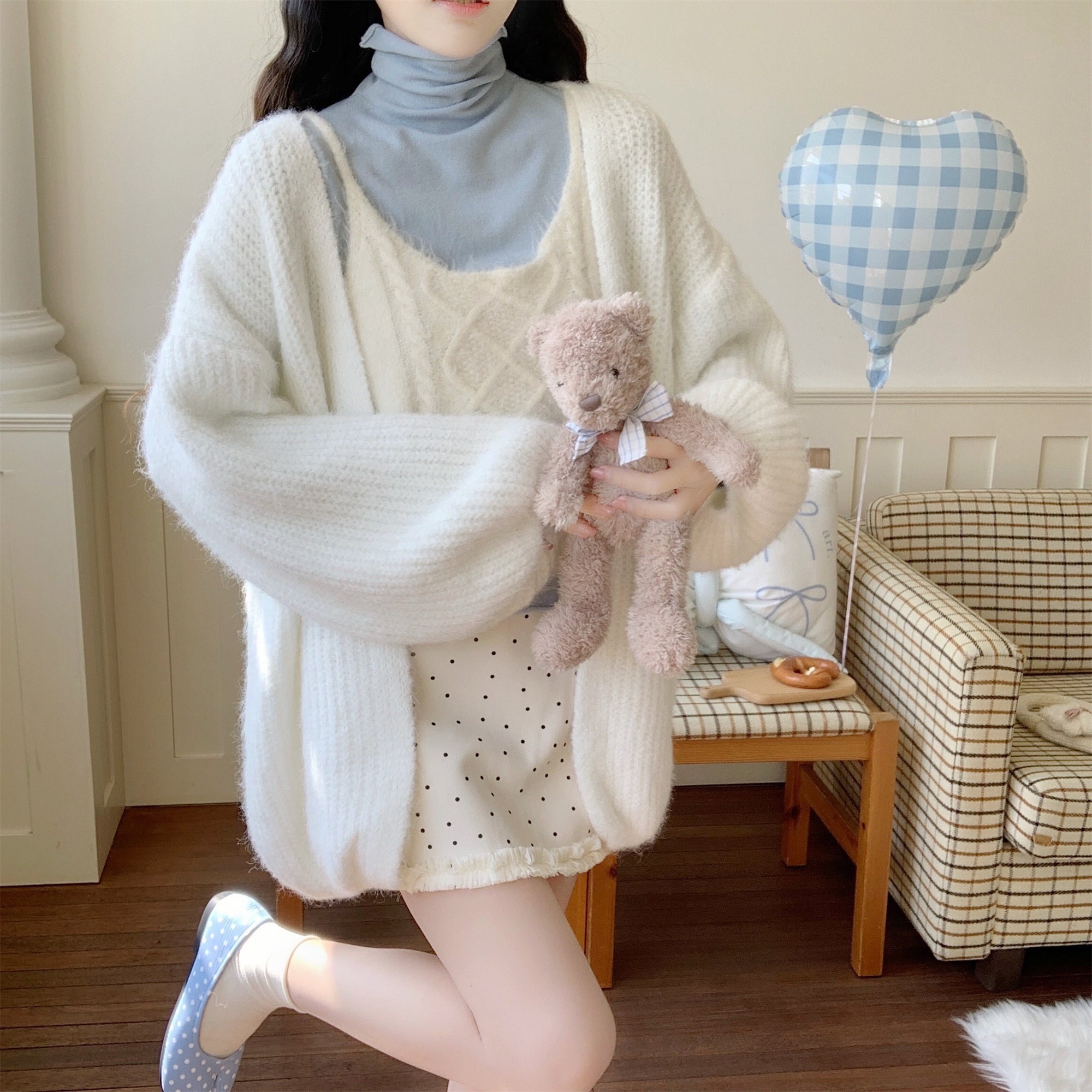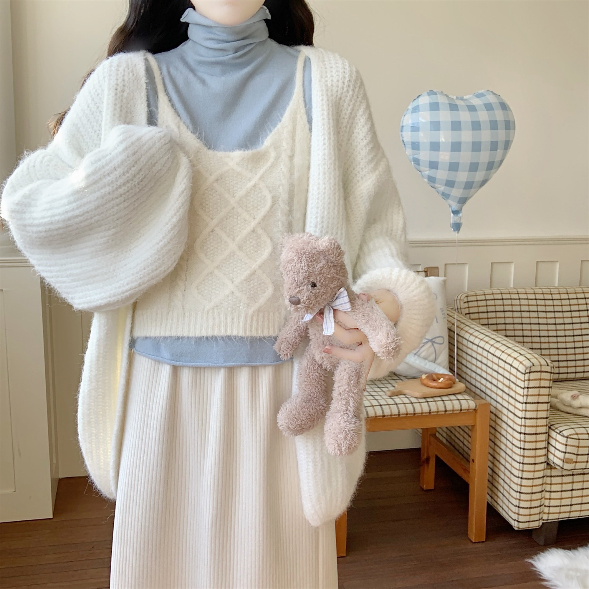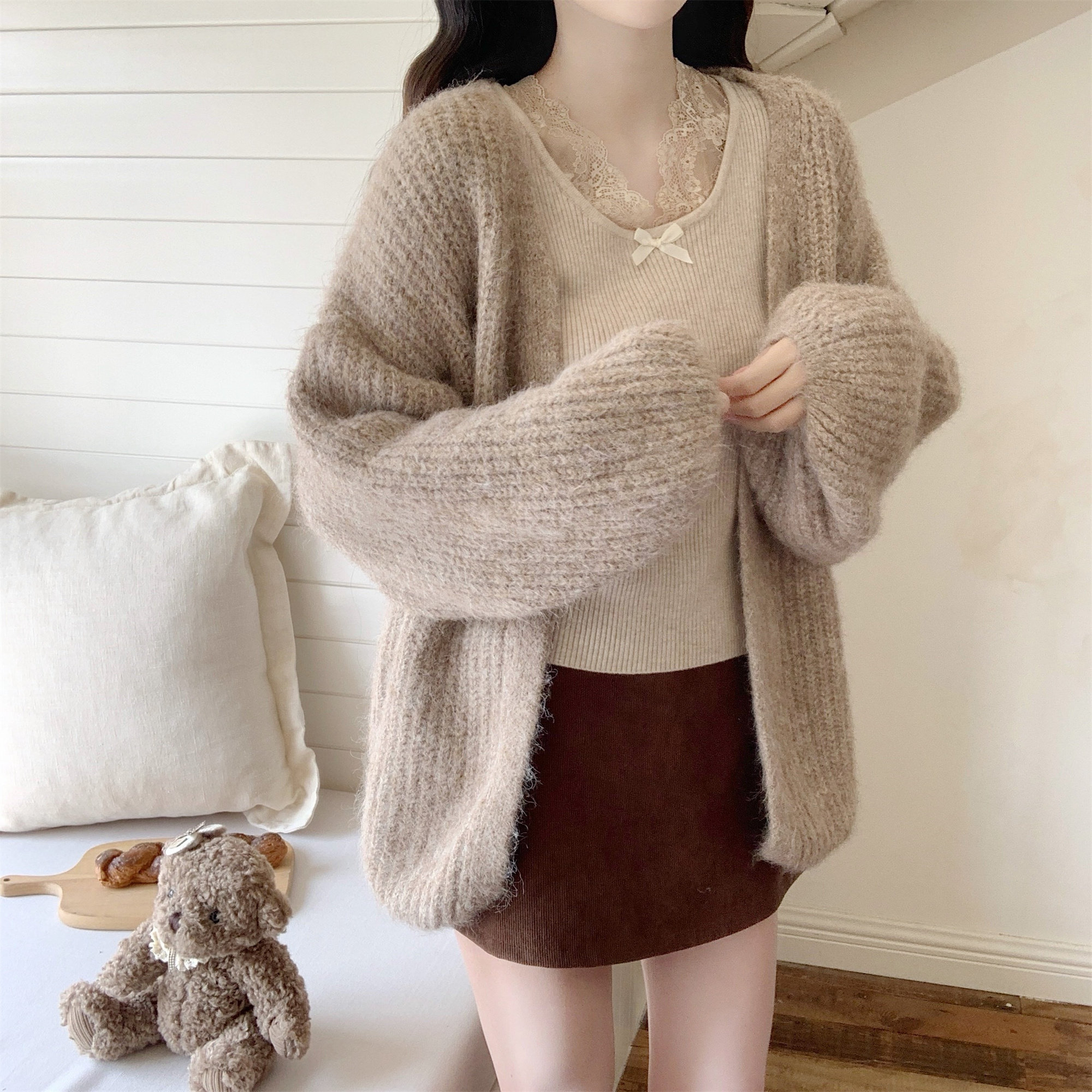 【Dear YN】慵懒风 加厚灯笼袖大版毛衣外套宽松针织开衫女秋冬