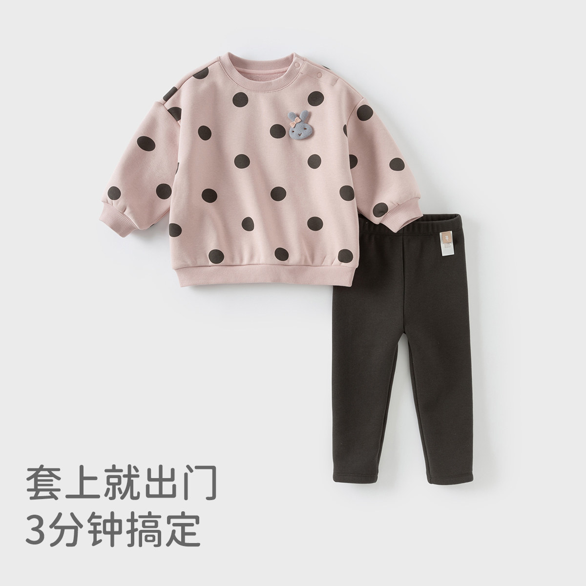 戴维贝拉女童长裤套装保暖冬新款儿童加绒卫衣裤子两件套宝宝衣服