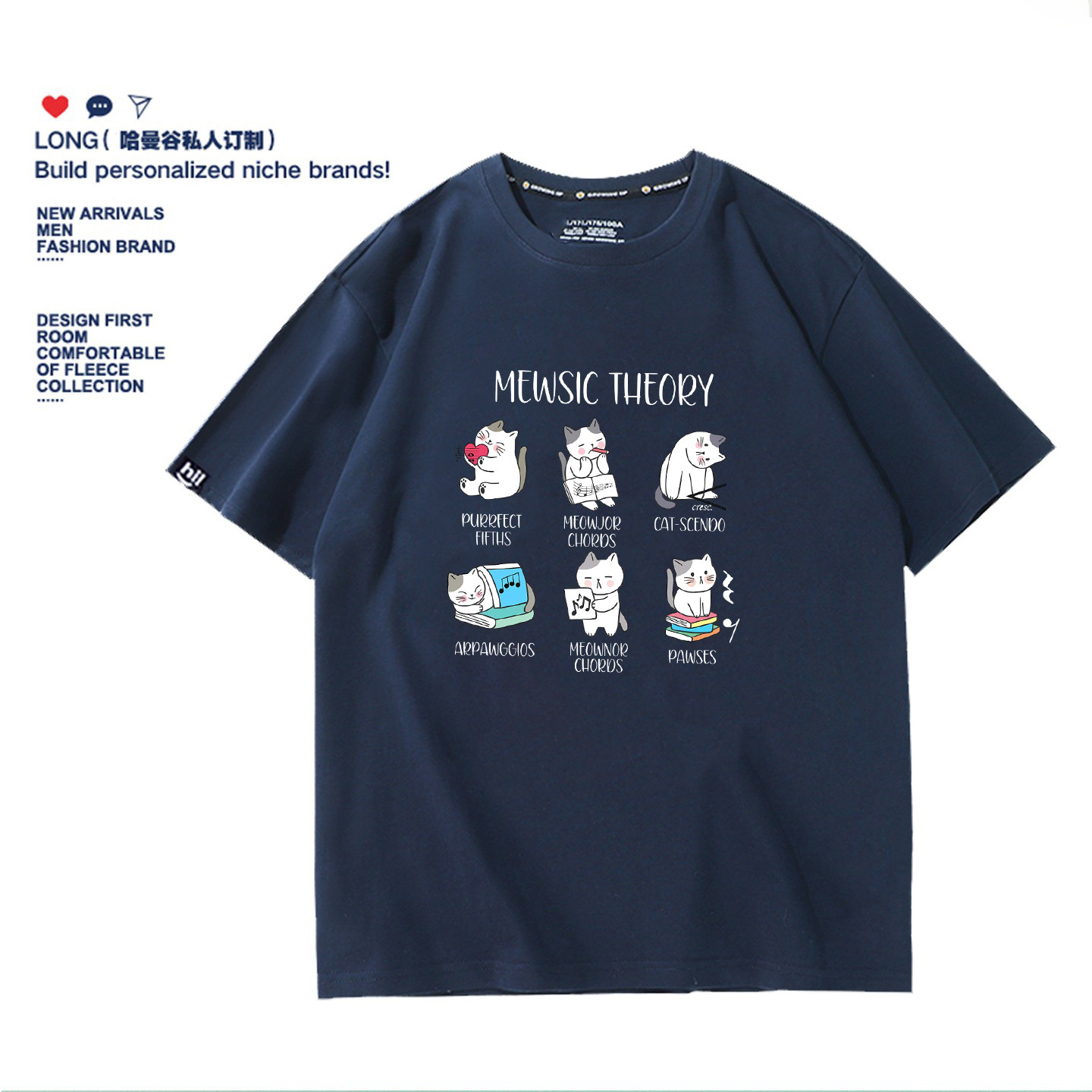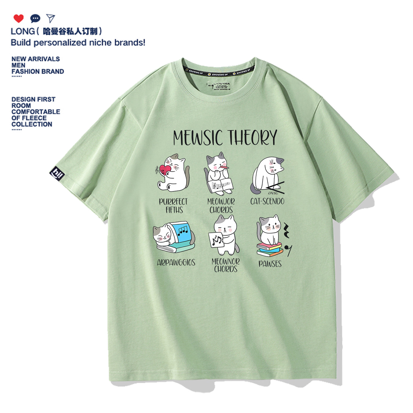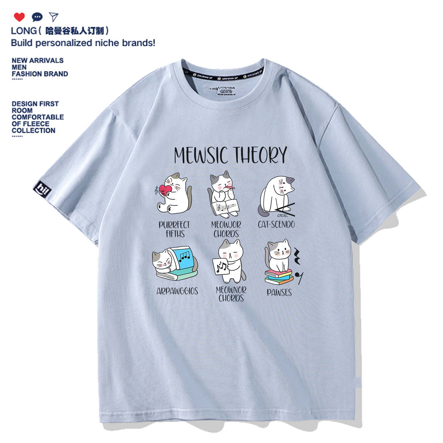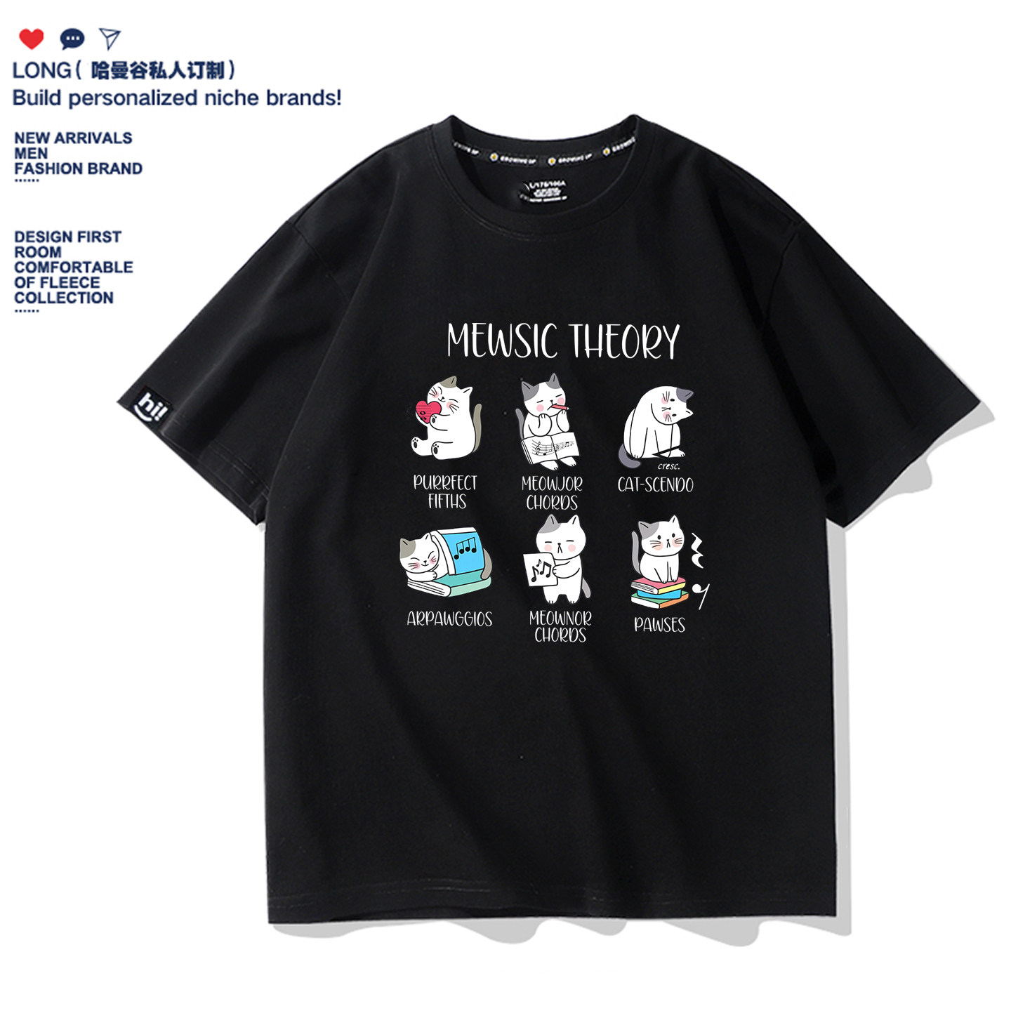 美式趣味音乐音符猫男女款纯棉短袖T恤学生青少年乐理儿童装衣服
