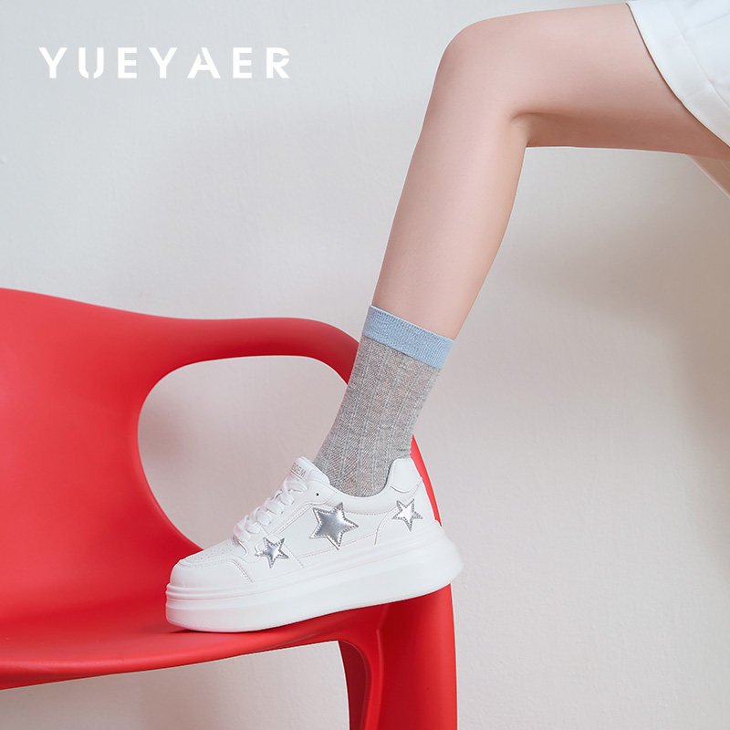 月芽儿小白鞋女2025秋季新款圆头厚底运动休闲板鞋轻便软底不累脚