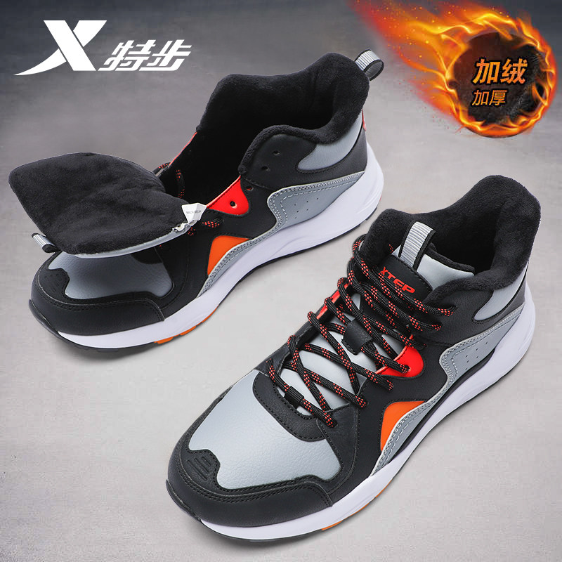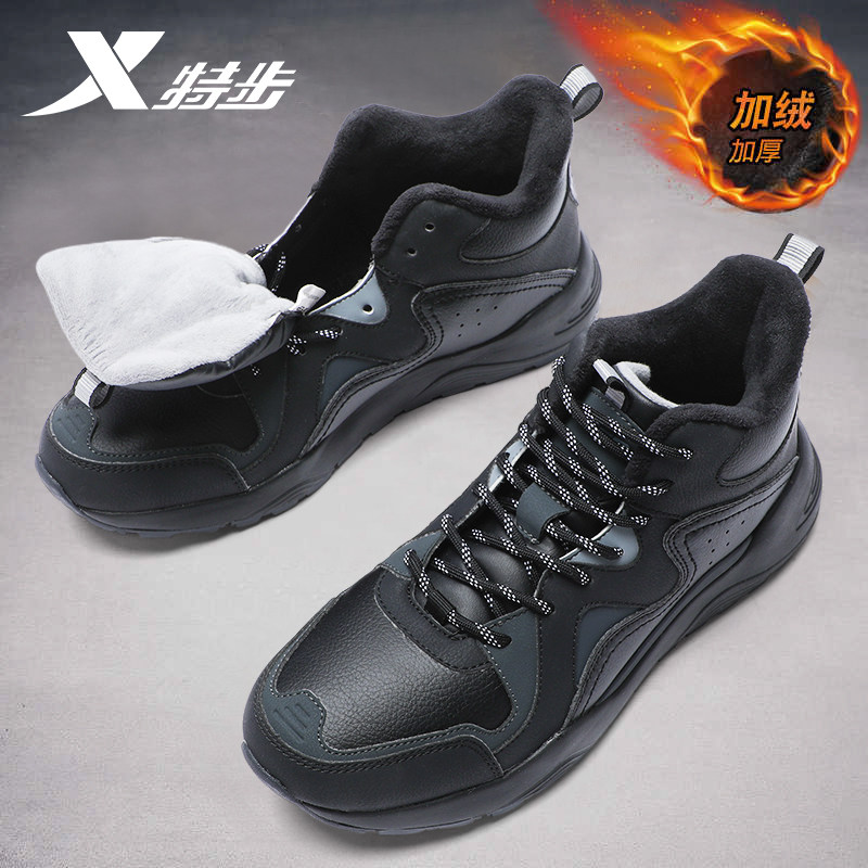 特步男鞋加绒棉鞋冬季保暖防滑休闲鞋加厚雪地靴防水运动鞋子男款