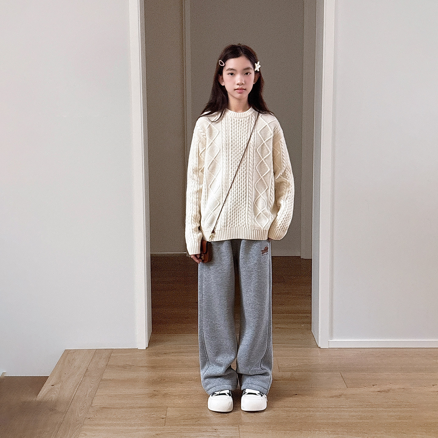 女大童毛衣【温暖轻柔】青少年2025秋装新款简约麻花绵羊毛针织衫