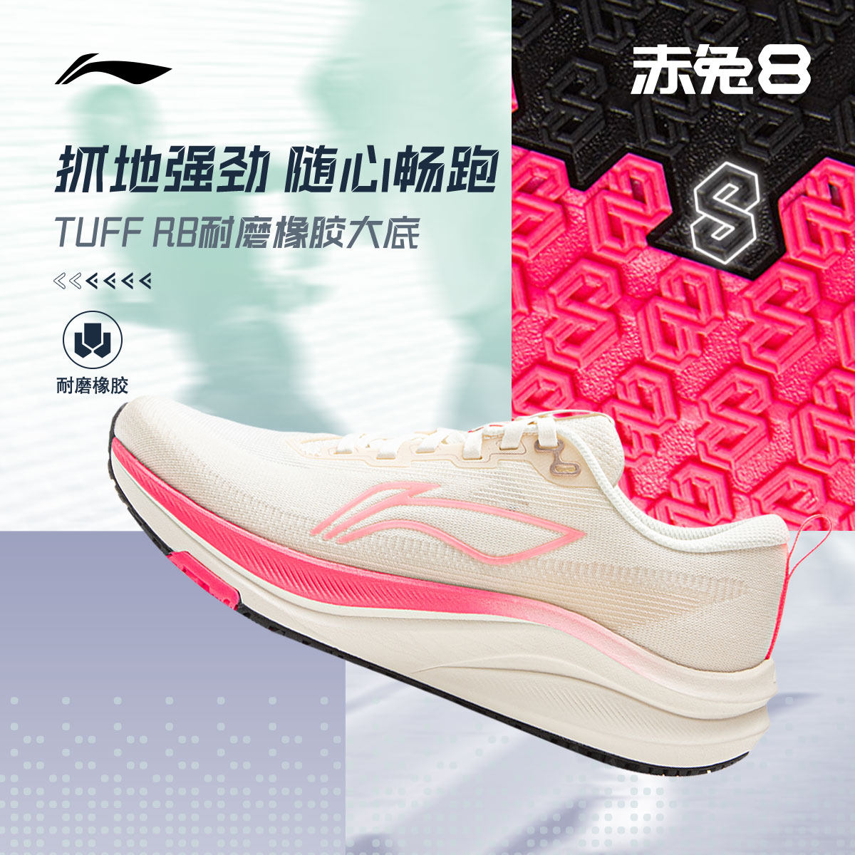 李宁赤兔8丨 跑步鞋女款中考体测轻便竞速训练透气减震跳绳运动鞋