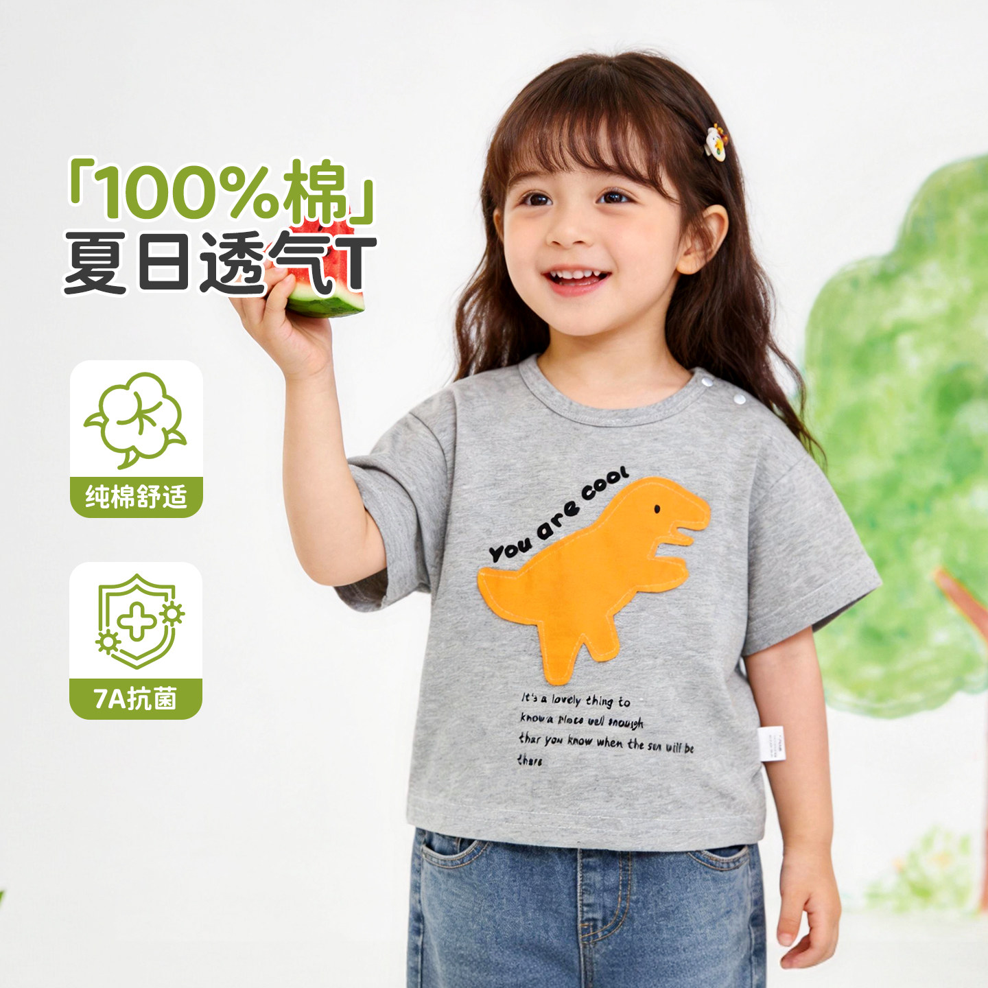 宝宝短袖t恤夏季婴儿纯棉上衣透气女童7A抗菌男童半袖儿童夏天a类