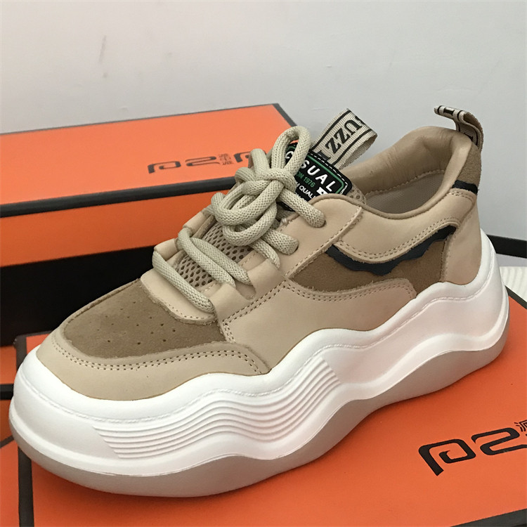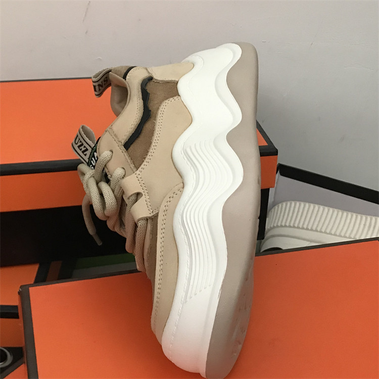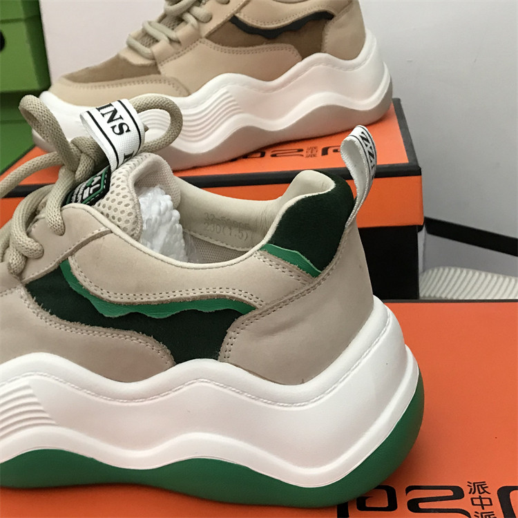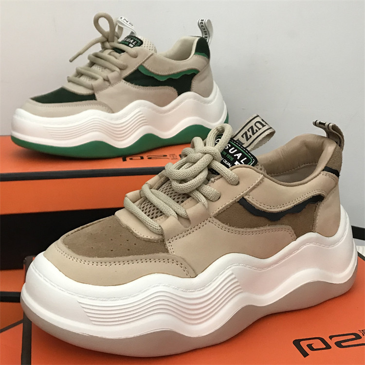 品牌女鞋老爹鞋头层牛皮面包鞋2025新款真皮板鞋波浪底厚底休闲鞋