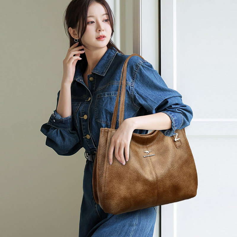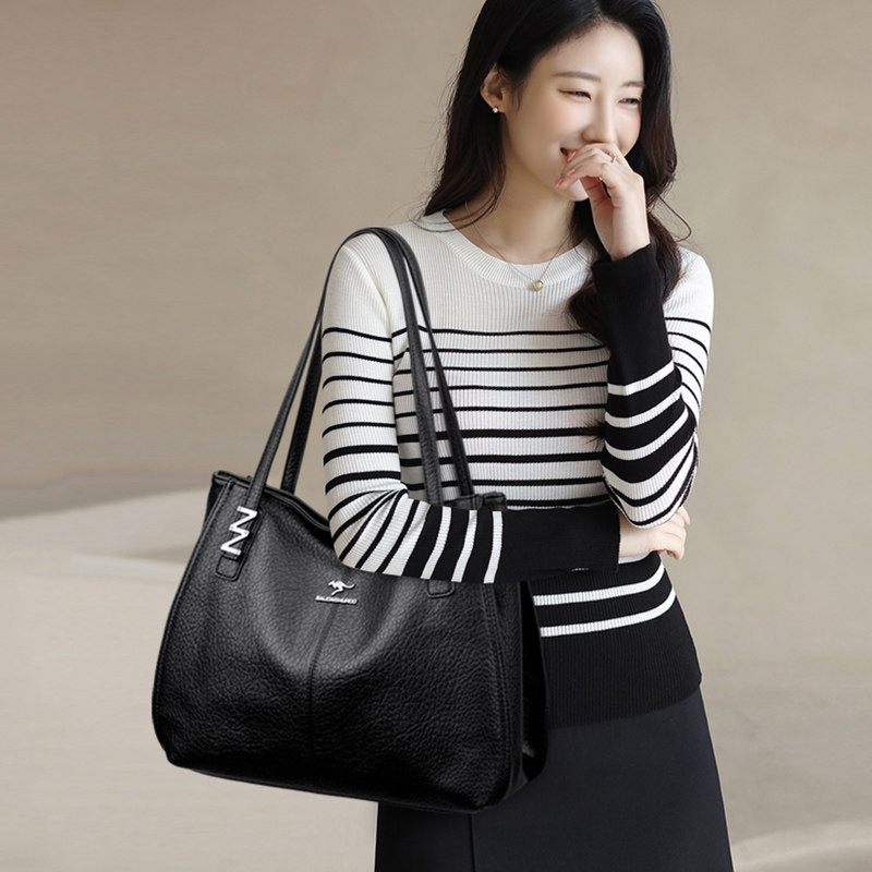 袋鼠真皮女包单肩包女2026新款大包包女士大容量牛皮包气质简约