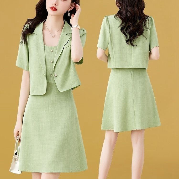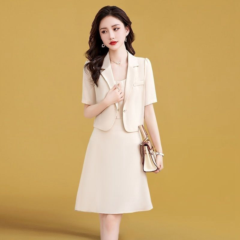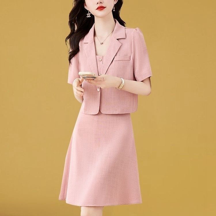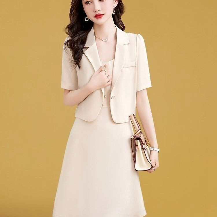 新品通勤连衣裙气质名媛女装新款夏装中长款西装吊带裙子两件套