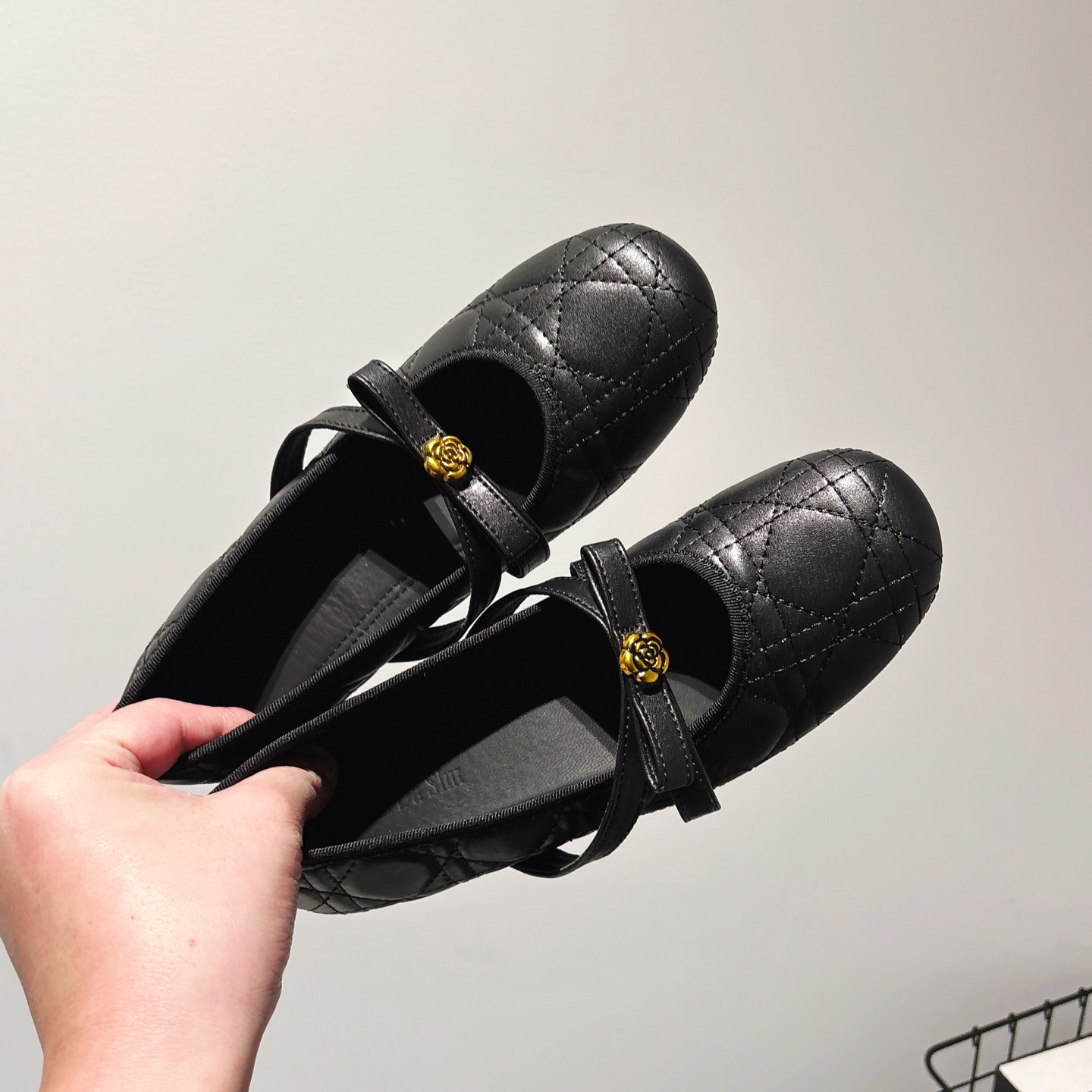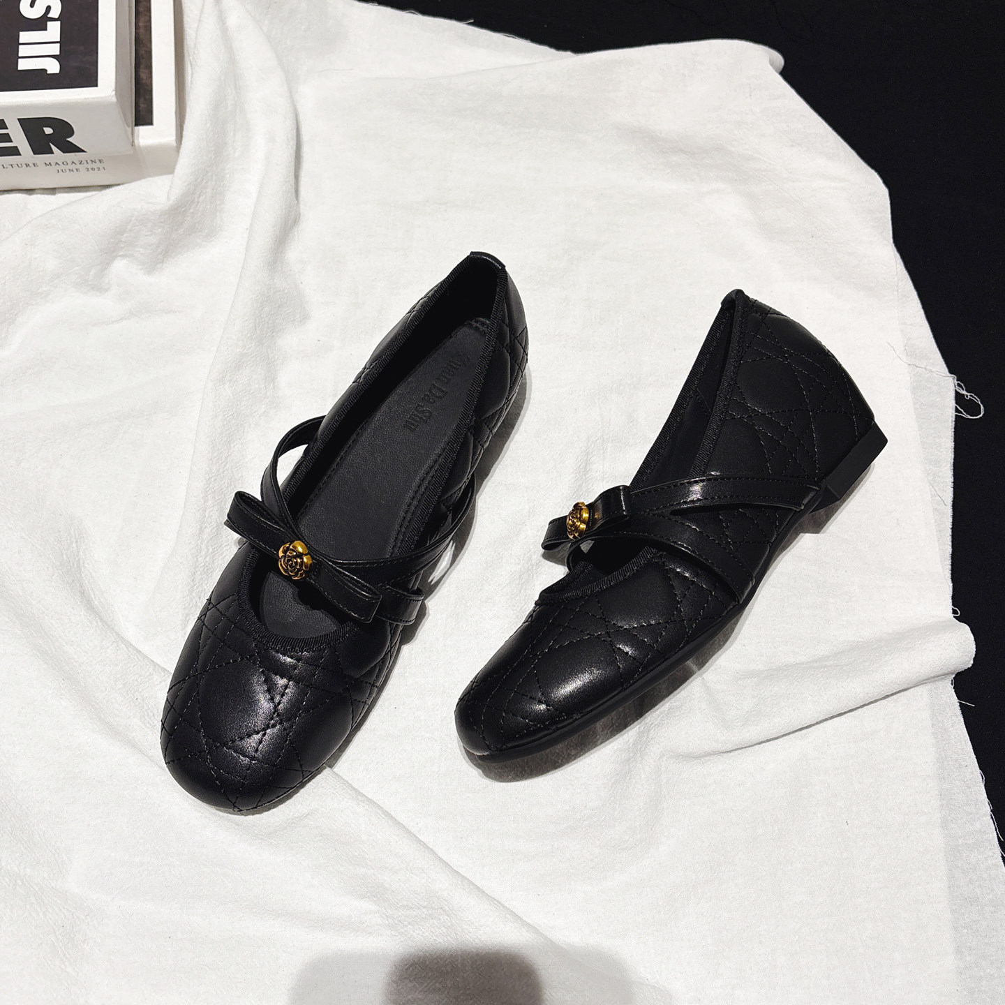 内增高4CM~小香风格纹山茶花玛丽珍鞋春款浅口圆头单鞋温柔仙女鞋