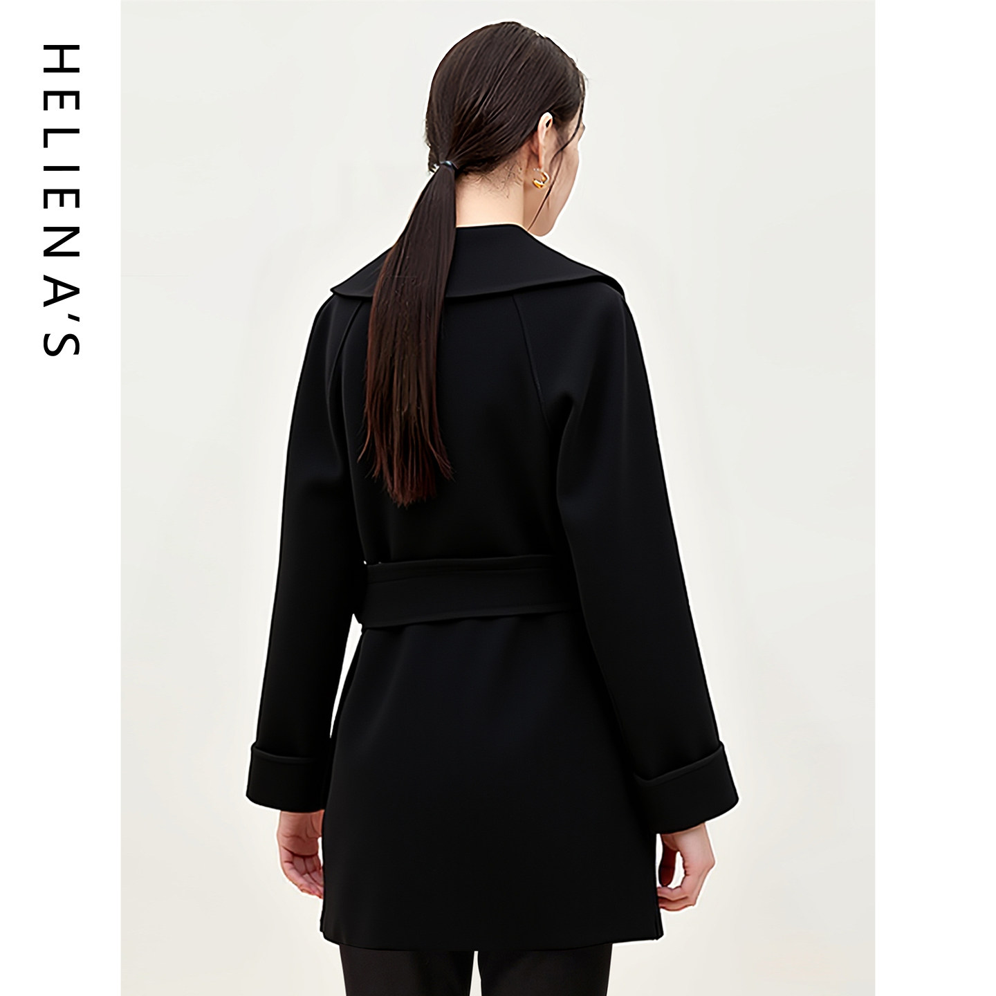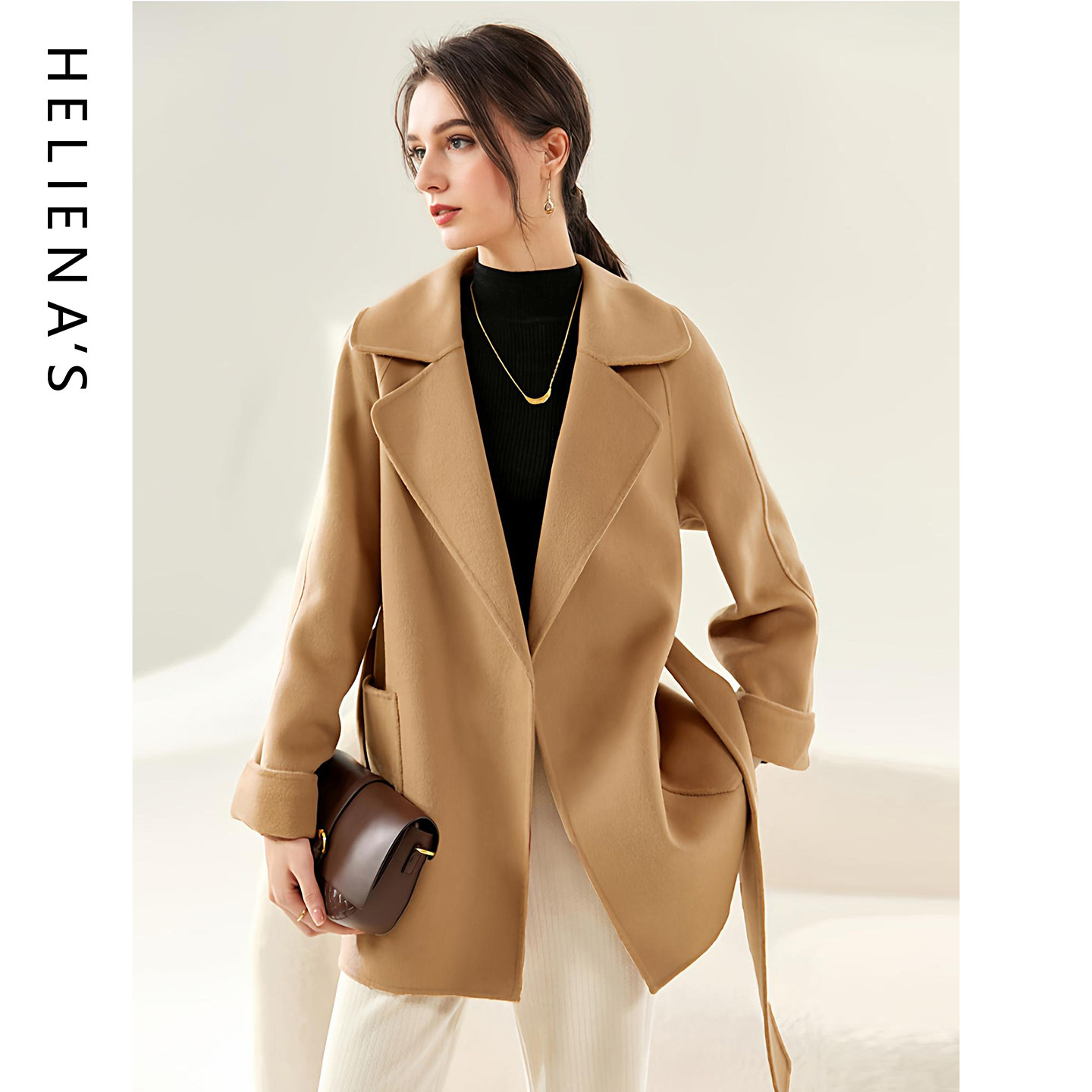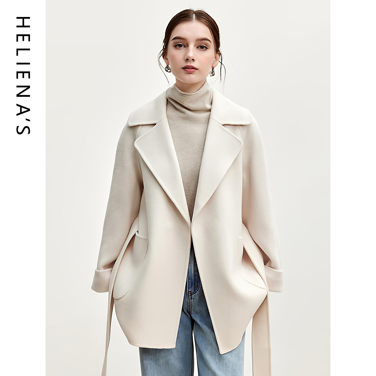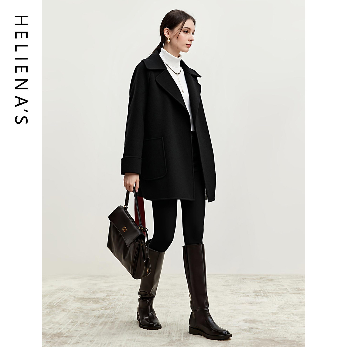 海兰丝双面呢短款大衣冬季正肩西装领保暖羊毛毛呢外套女