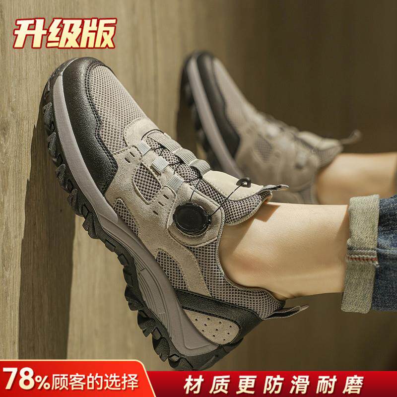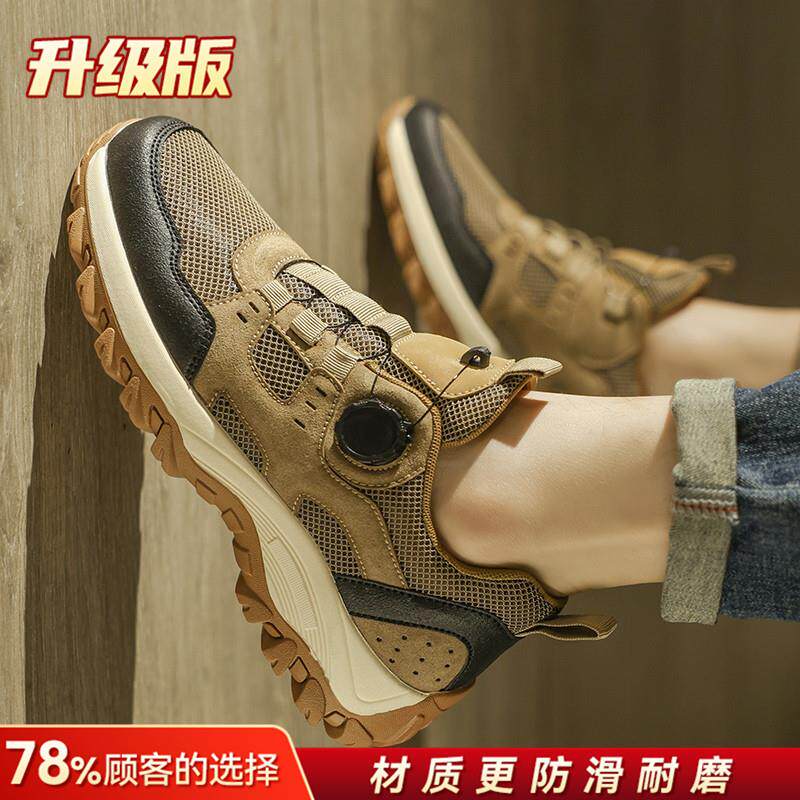 极速男鞋夏季网面透气轻便休闲运动鞋工地干活防滑耐磨旋钮闭合劳