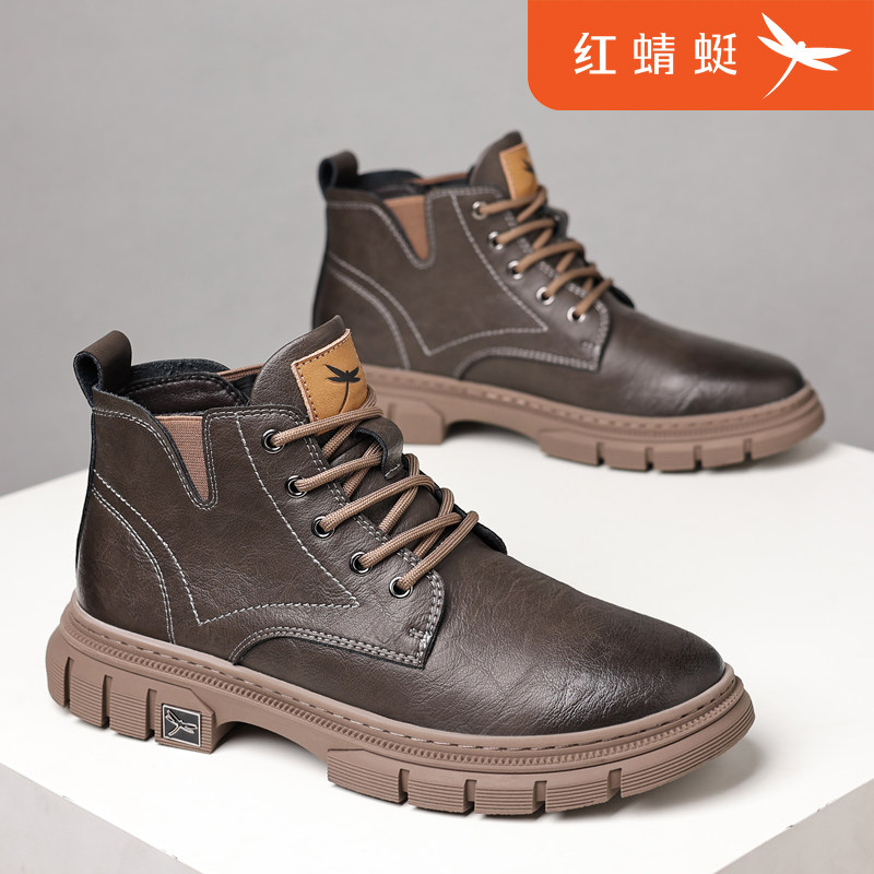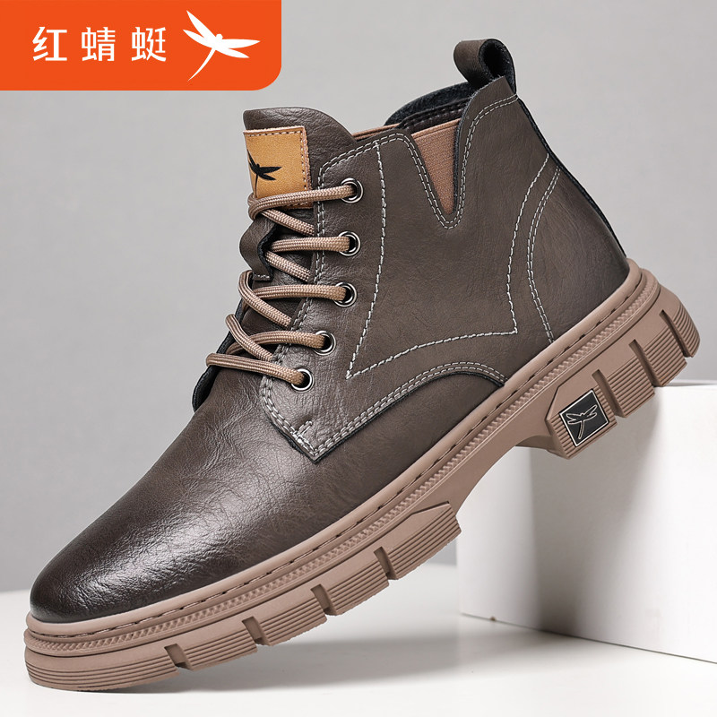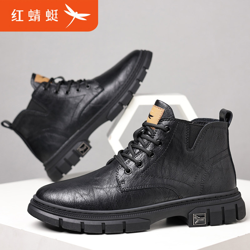 红蜻蜓男鞋2025秋冬季新款时尚马丁靴保暖加厚底户外登山百搭男靴