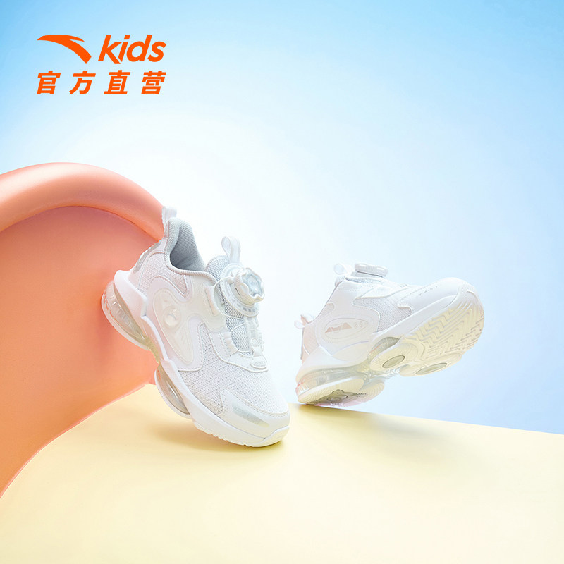安踏儿童鞋男童运动鞋春秋新款网面跑步鞋子旋钮小童宝宝小白鞋女