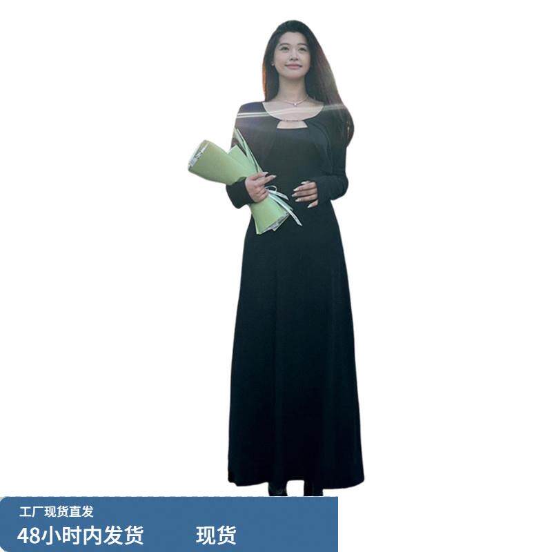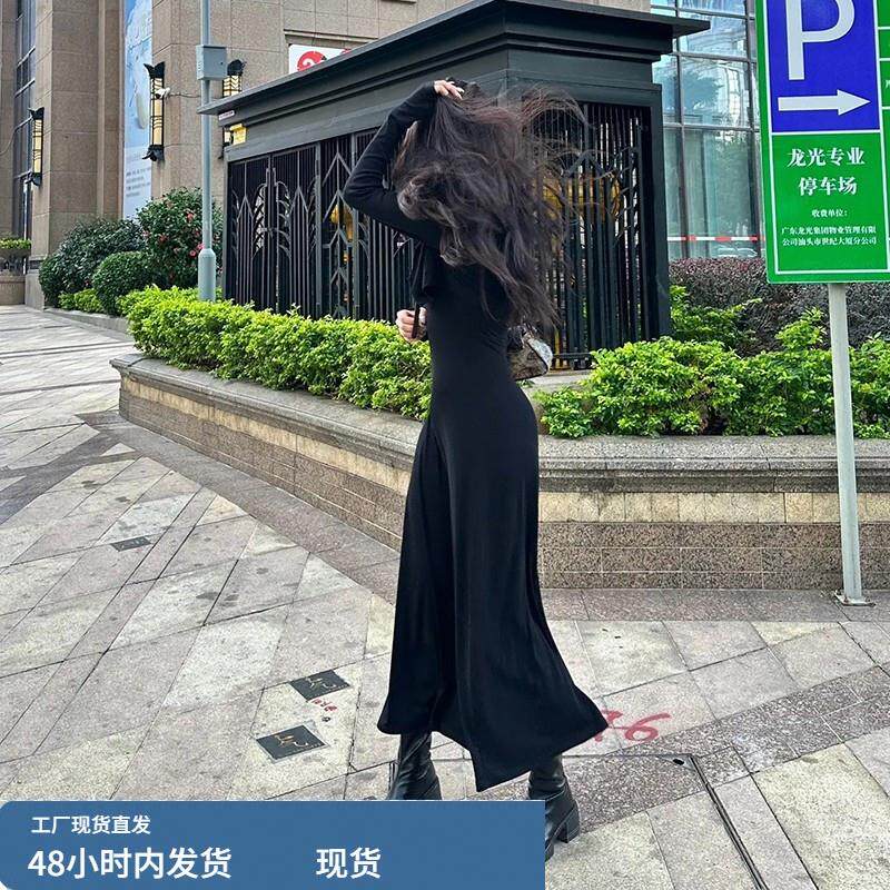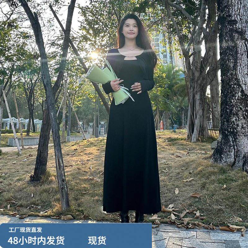 2026小个子早春新款法式黑色吊带连衣裙子高级感女装秋冬长裙套装