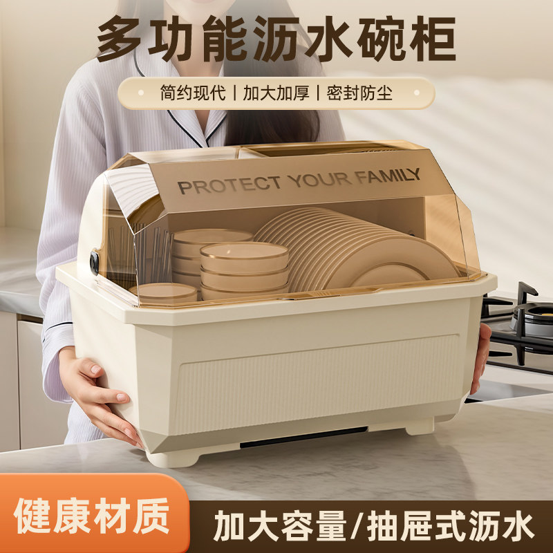 碗筷收纳盒特大小号塑料碗柜抽屉式沥水碗架家用收纳箱厨房置物架
