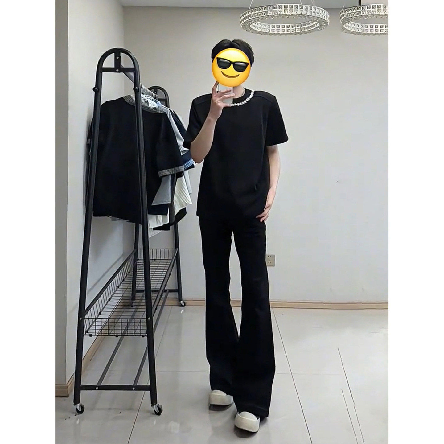 cleanfit黑色微喇西裤男款夏季垂感弯刀直筒裤提档显腿长西装裤子
