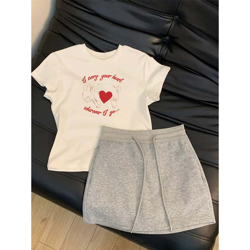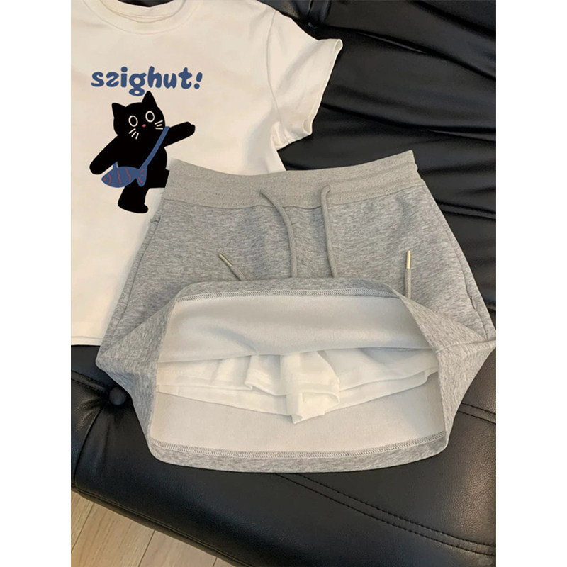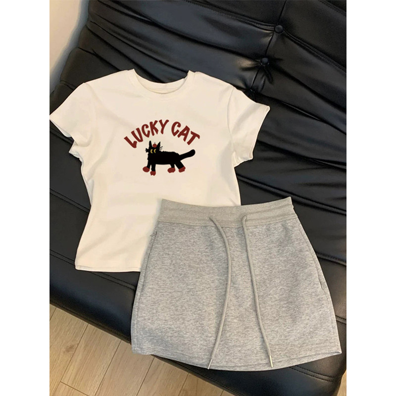 女童短袖T恤短裙夏装两件套2026新款中大童夏款衣服韩系百搭套装