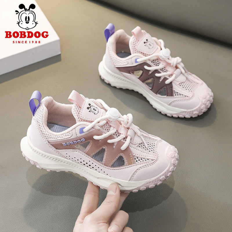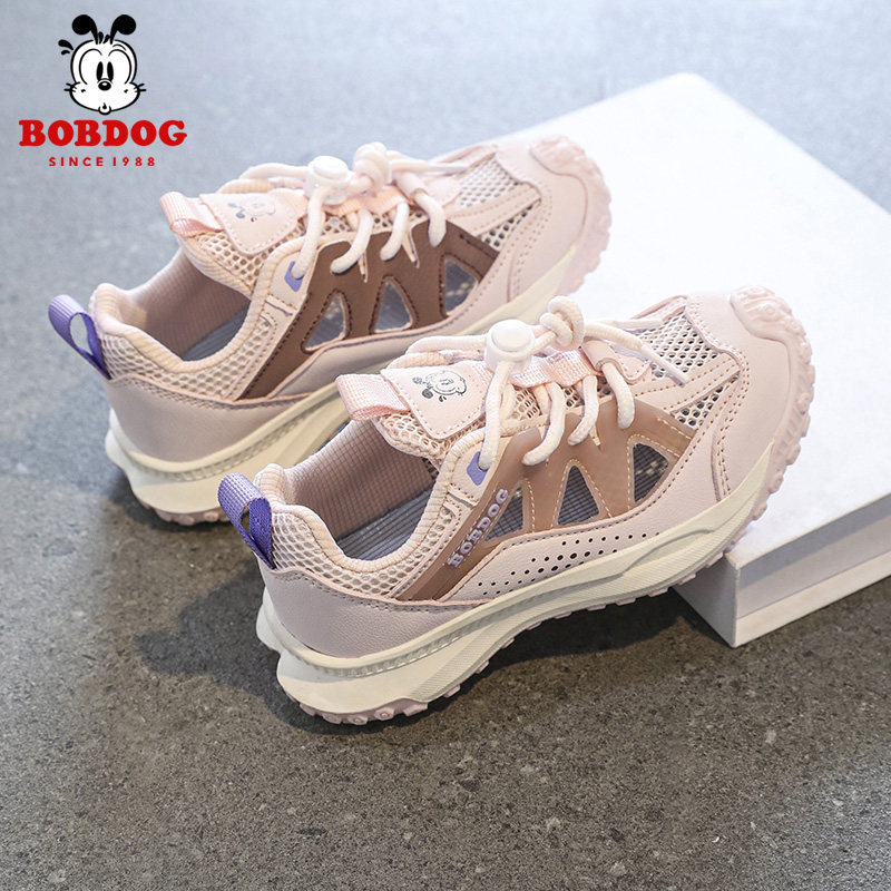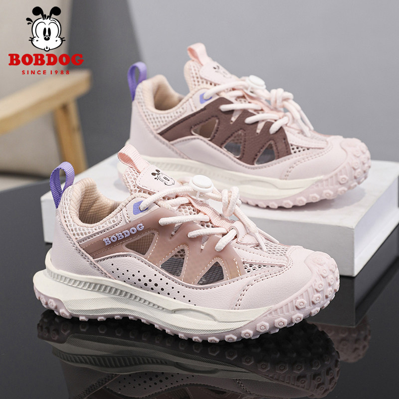 巴布豆女童运动凉鞋夏季新款网面透气女孩子小学生软底包头框子鞋