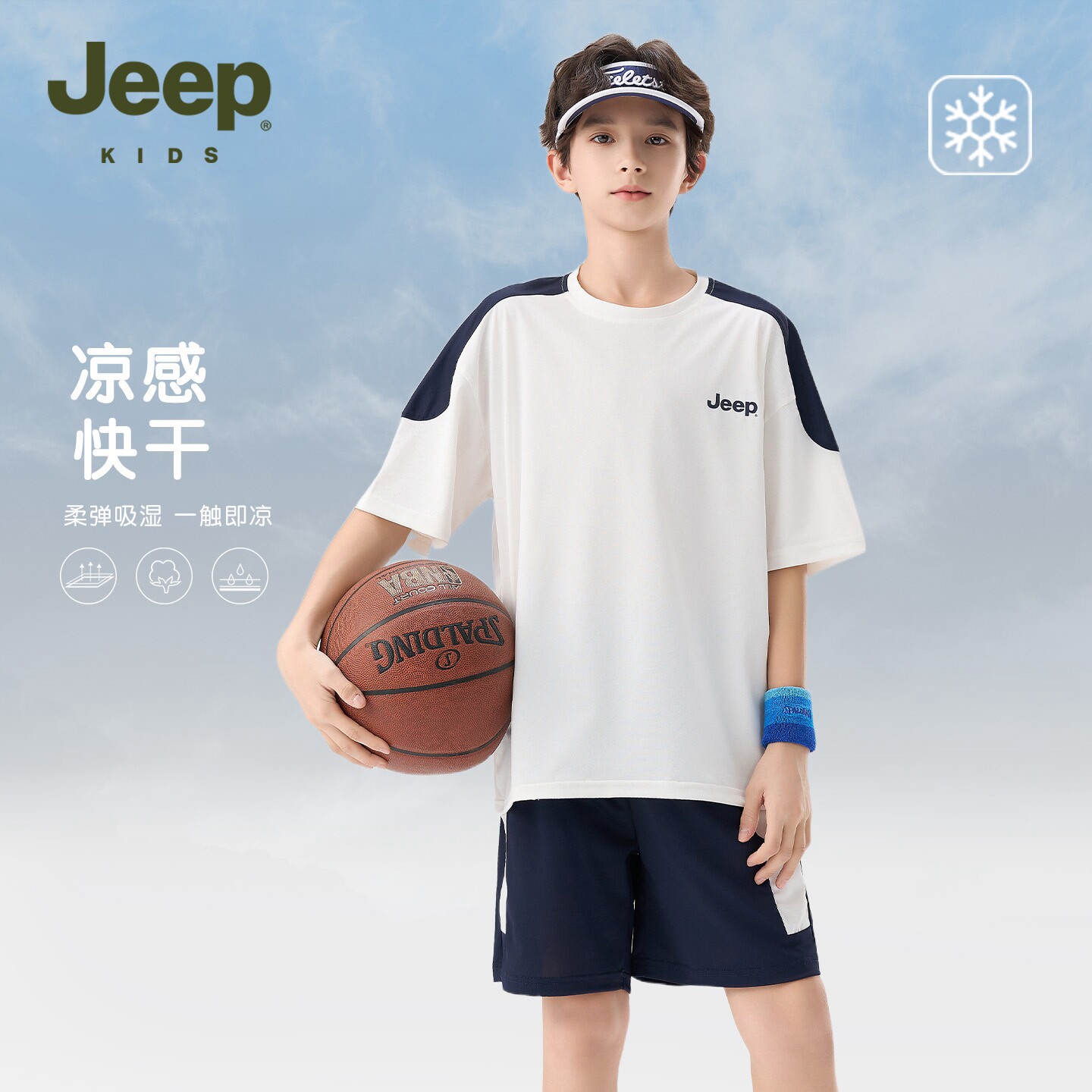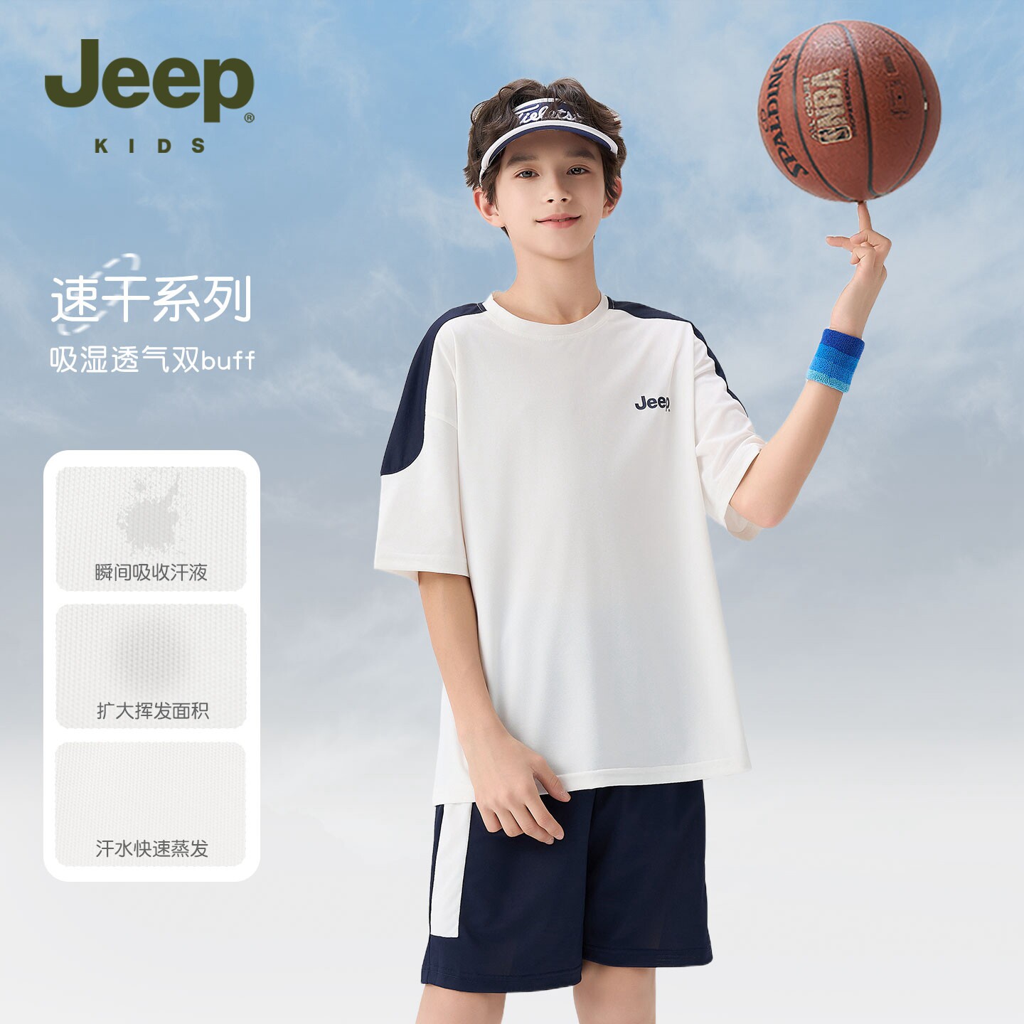 Jeep男童运动套装青少年速干2026夏季新款儿童篮球短袖短裤两件套