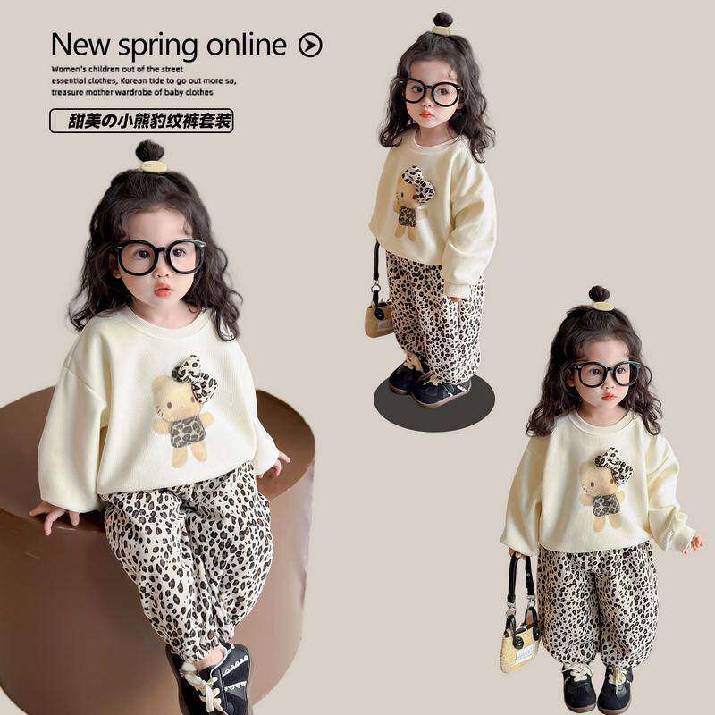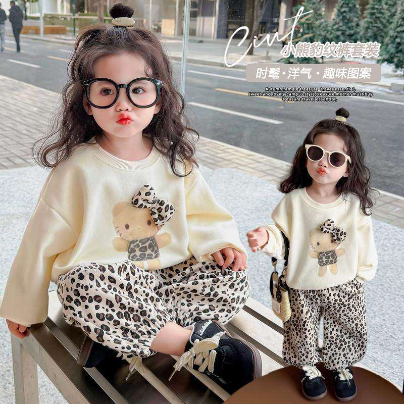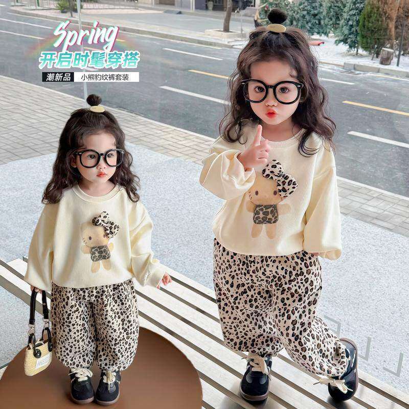 全棉纯棉女童套装2026新款洋气儿童春装卫衣两件套宝宝运动服春秋