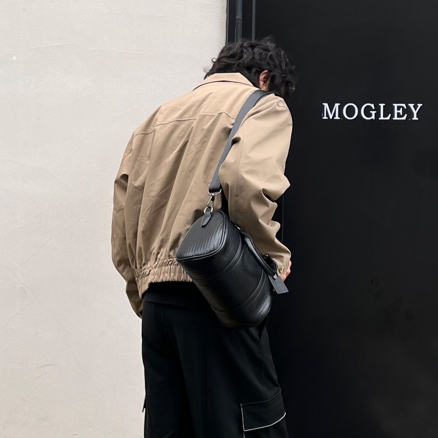 YUEN复古单肩斜挎大容量托特皮质圆筒波士顿枕头包男女中性风ins