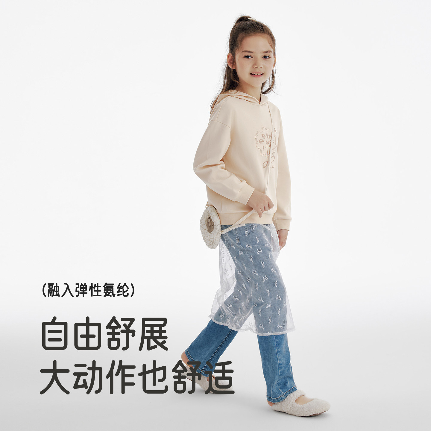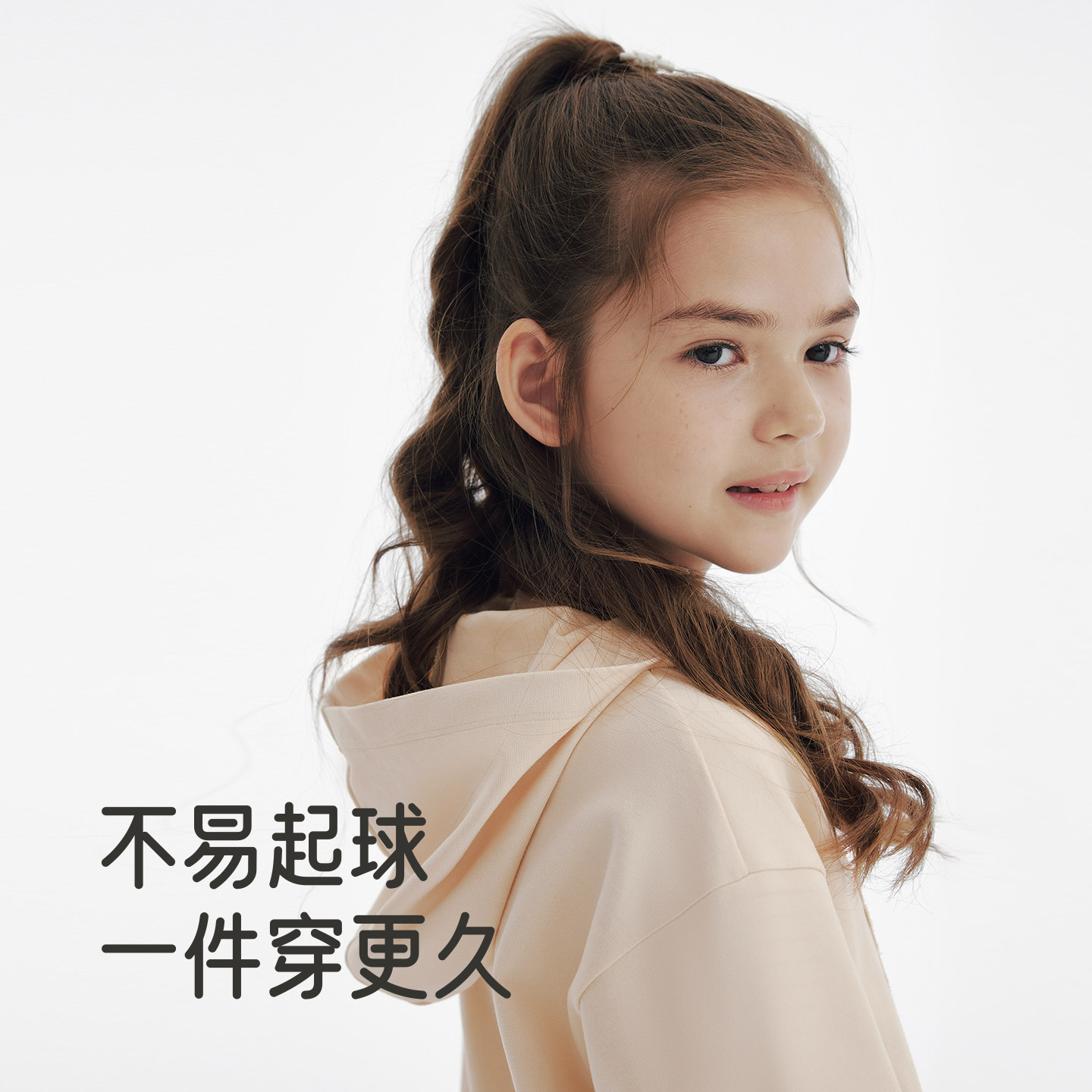 英氏女童连帽卫衣春秋新款春季宽松上衣中大童纯色长袖套头衫