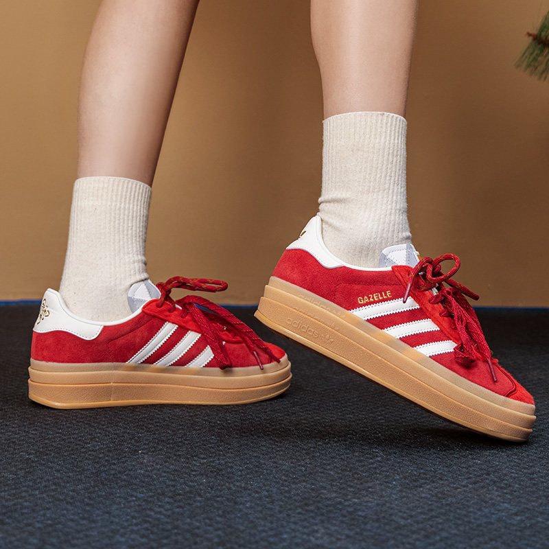 阿迪达斯三叶草红色厚底板鞋女鞋26春新年款本命年拜年运动休闲鞋
