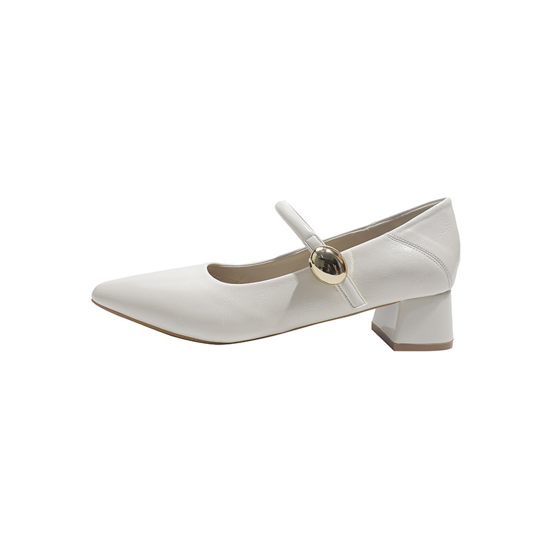 真皮~骄屿法式尖头玛丽珍鞋女2026新款通勤气质单鞋浅口粗高跟鞋