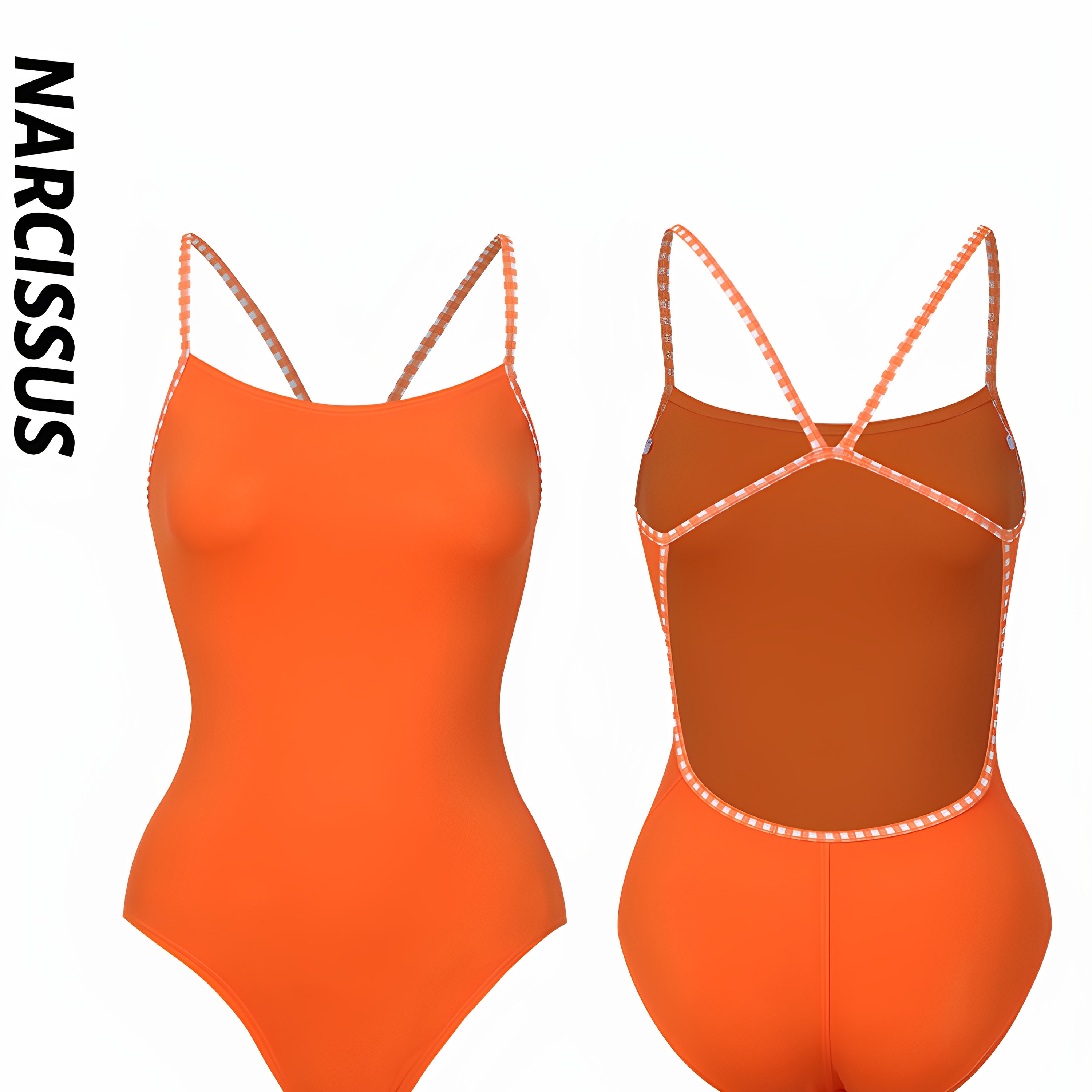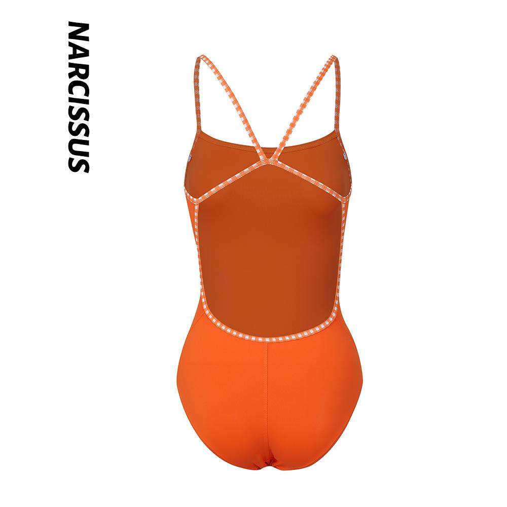 水仙SWIM女士游泳交叉带连体泳衣单层橙色竞速纯色吊带运动泳衣
