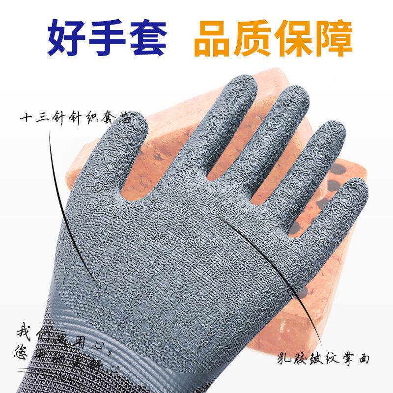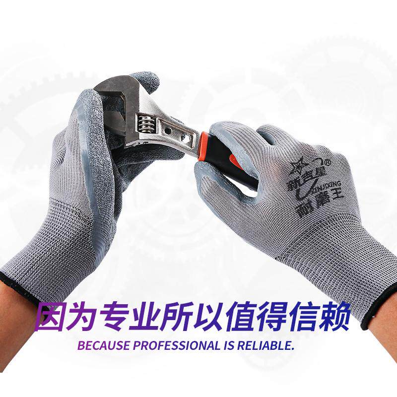 新吉星手套劳保耐磨王工作干活带胶皮防滑加厚皱纹浸挂橡胶手套男