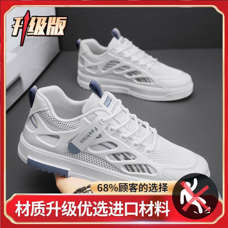 男鞋2026夏季新款网面透气防臭白色运动鞋青少年高中初中学生板鞋