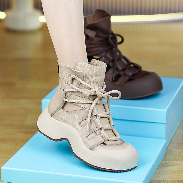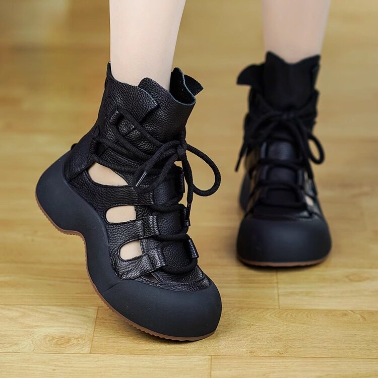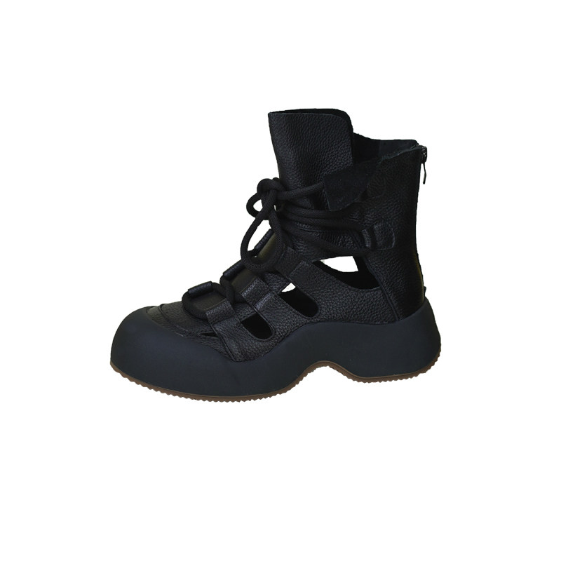 春夏新款真皮镂空马丁靴女透气网纱头层牛皮凉鞋复古厚底松糕短靴