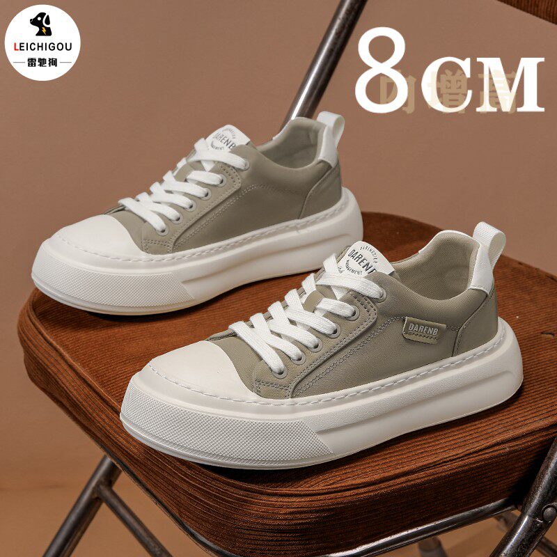 小众潮牌板鞋内增高男鞋10cm隐形夏季透气布面轻便厚底防滑休闲鞋
