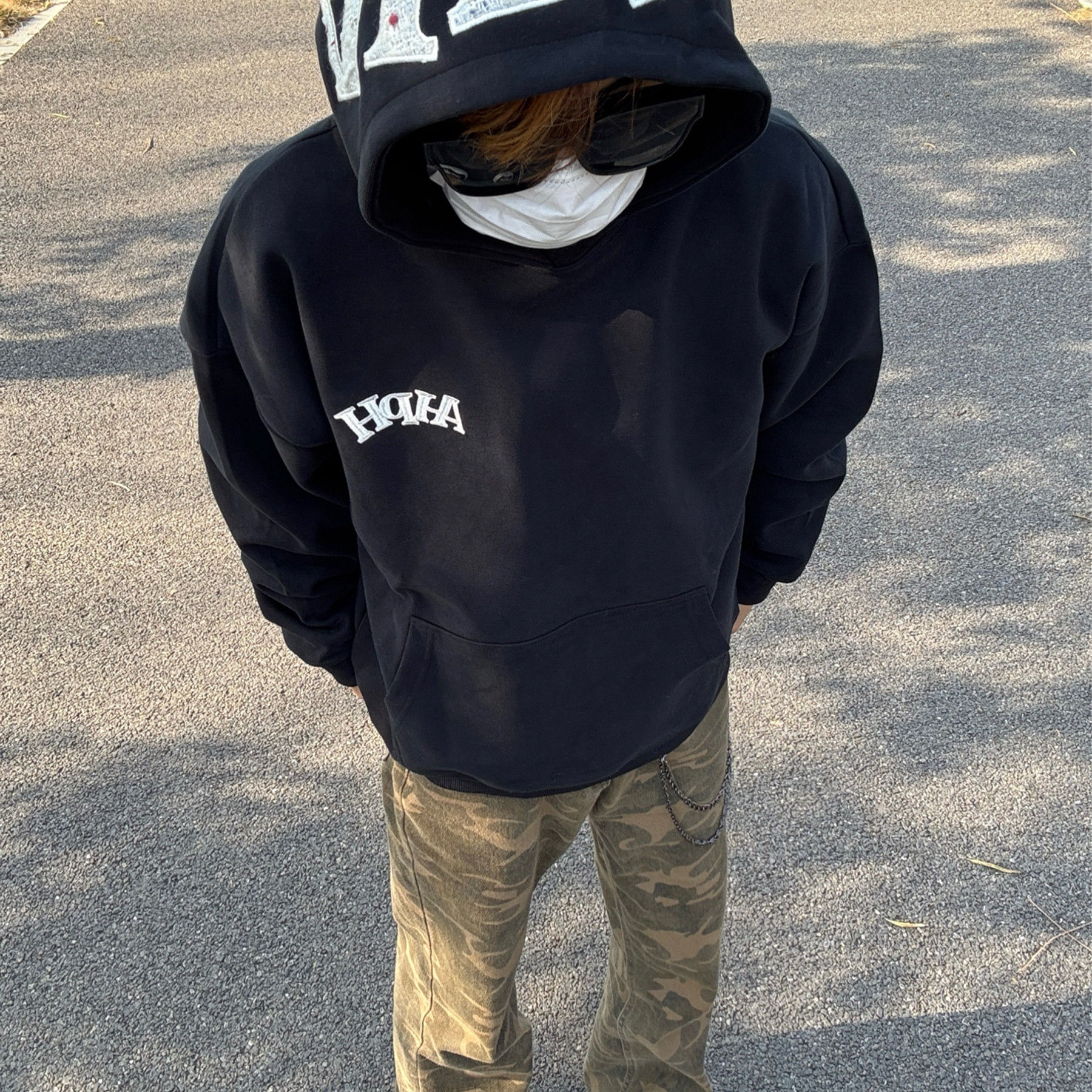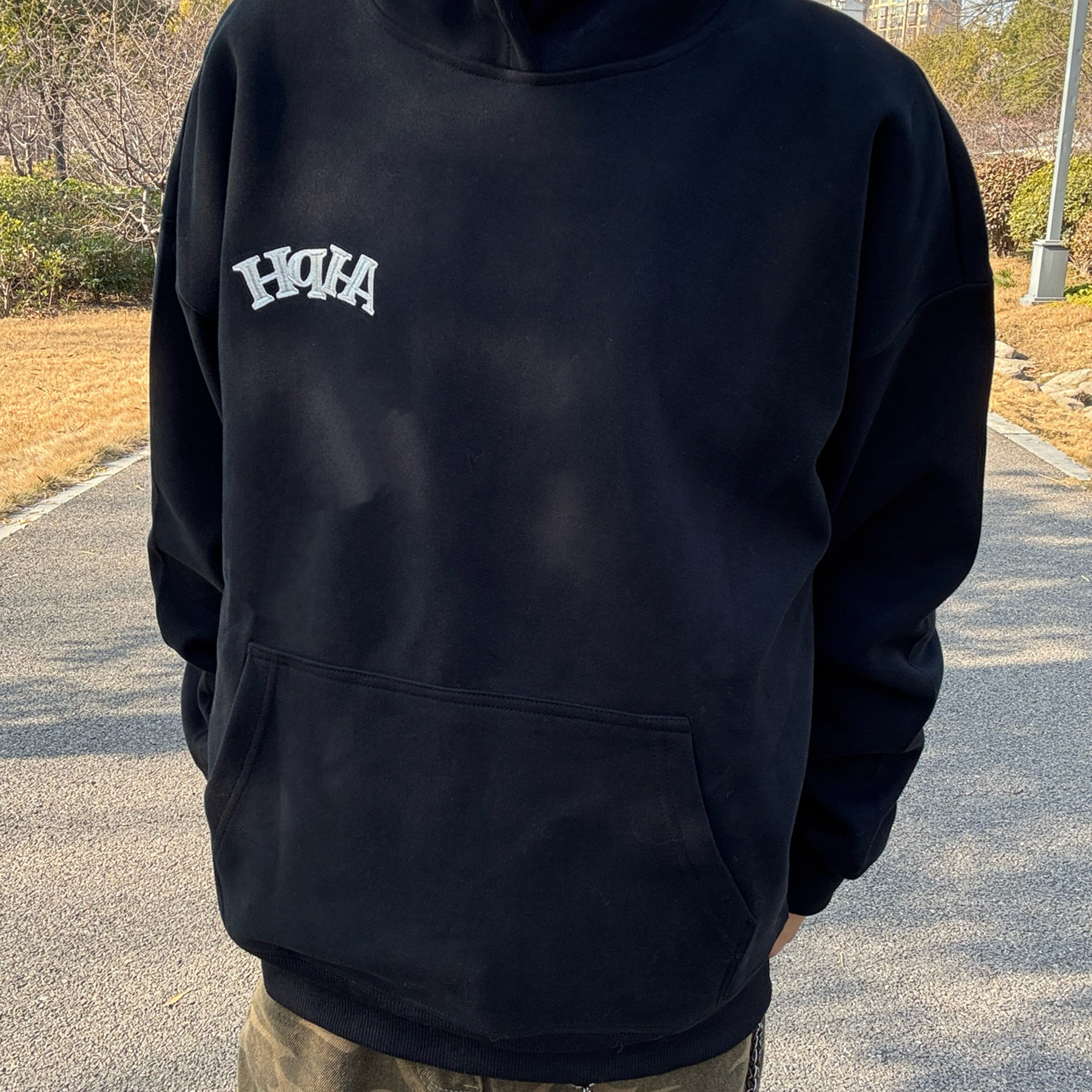 2026新款黑色字母刺绣连帽卫衣男女款秋冬加绒加厚宽松高级感外套