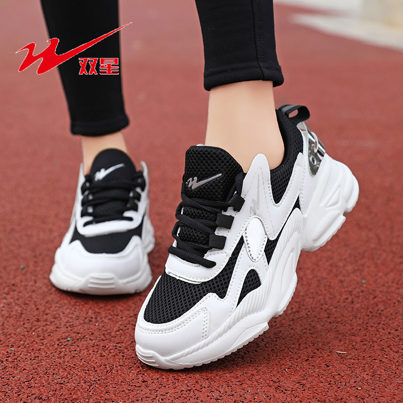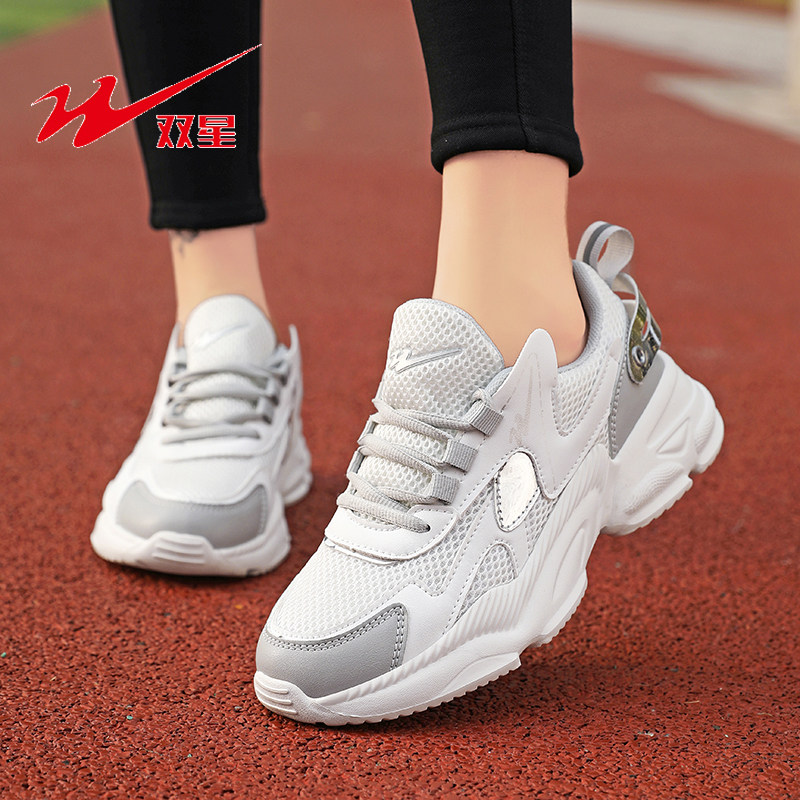 双星女鞋春秋网面透气运动鞋女软底休闲老爹鞋女ins潮百搭跑步鞋