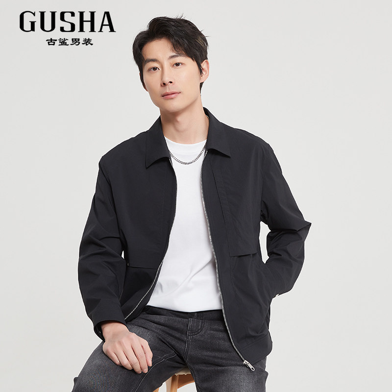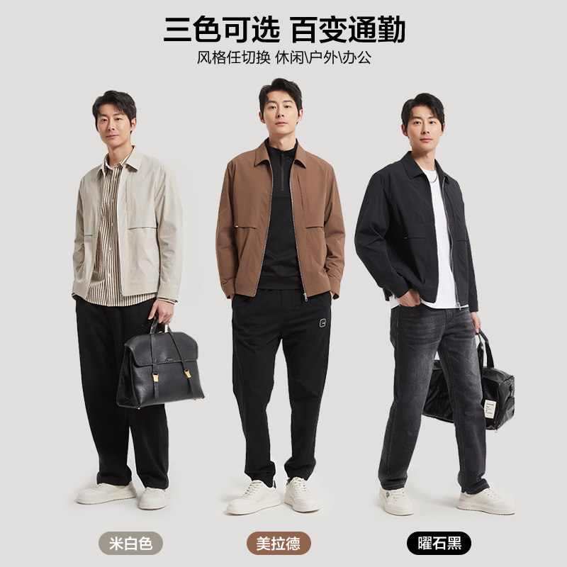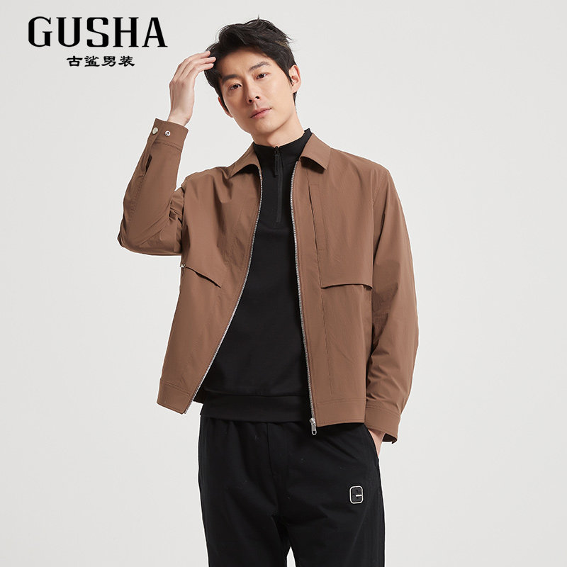 【轻熟风】古鲨棕色行政夹克男高端商务休闲翻领外套2026春装新款