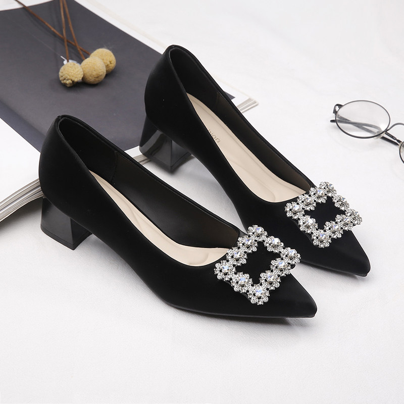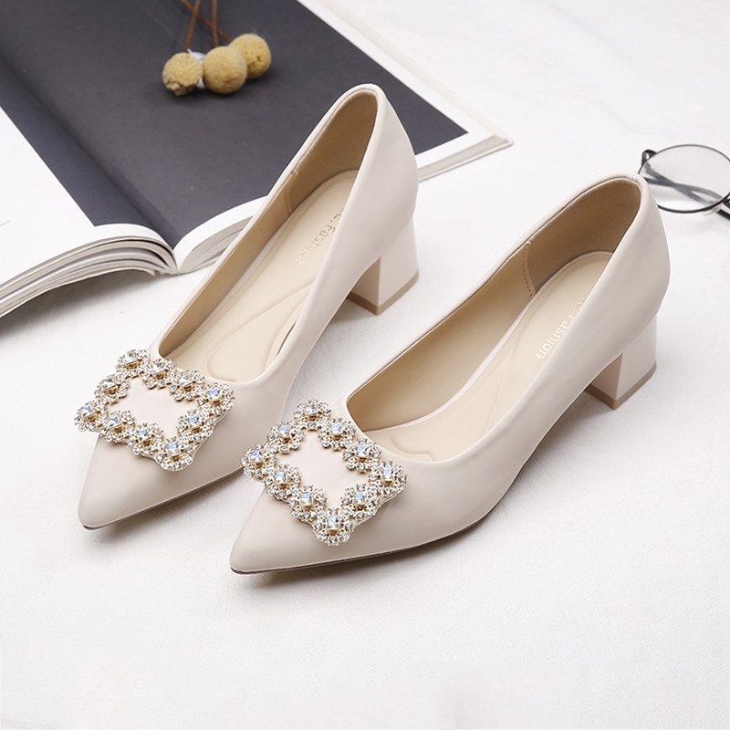 粗跟单鞋女2026新款春秋工作职业女鞋子配裙子百搭伴娘尖头高跟鞋
