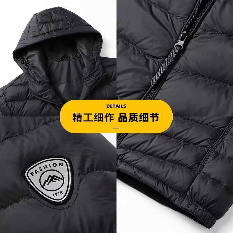 耐克顿轻薄款连帽羽绒服男士2025冬季新款保暖宽松白鸭绒防寒外套