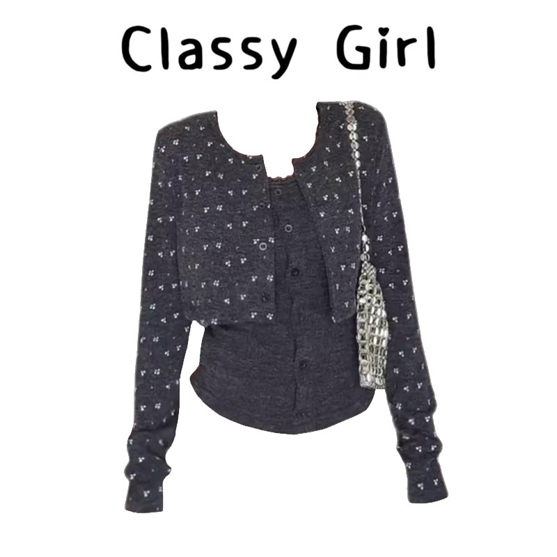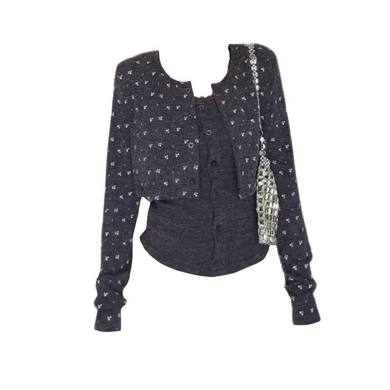 碎花短款针织衫吊带两件套装女秋新款韩系氛围感显瘦长袖chic上衣