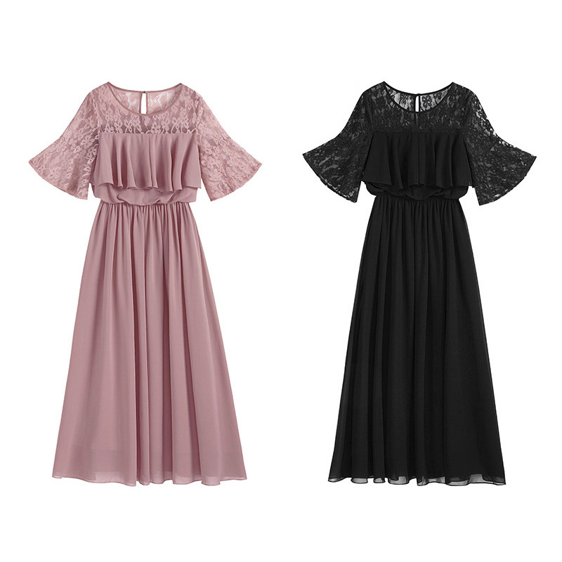 雪纺连衣裙子女夏季优雅显瘦蕾丝拼接长裙子日常礼服裙长款88202