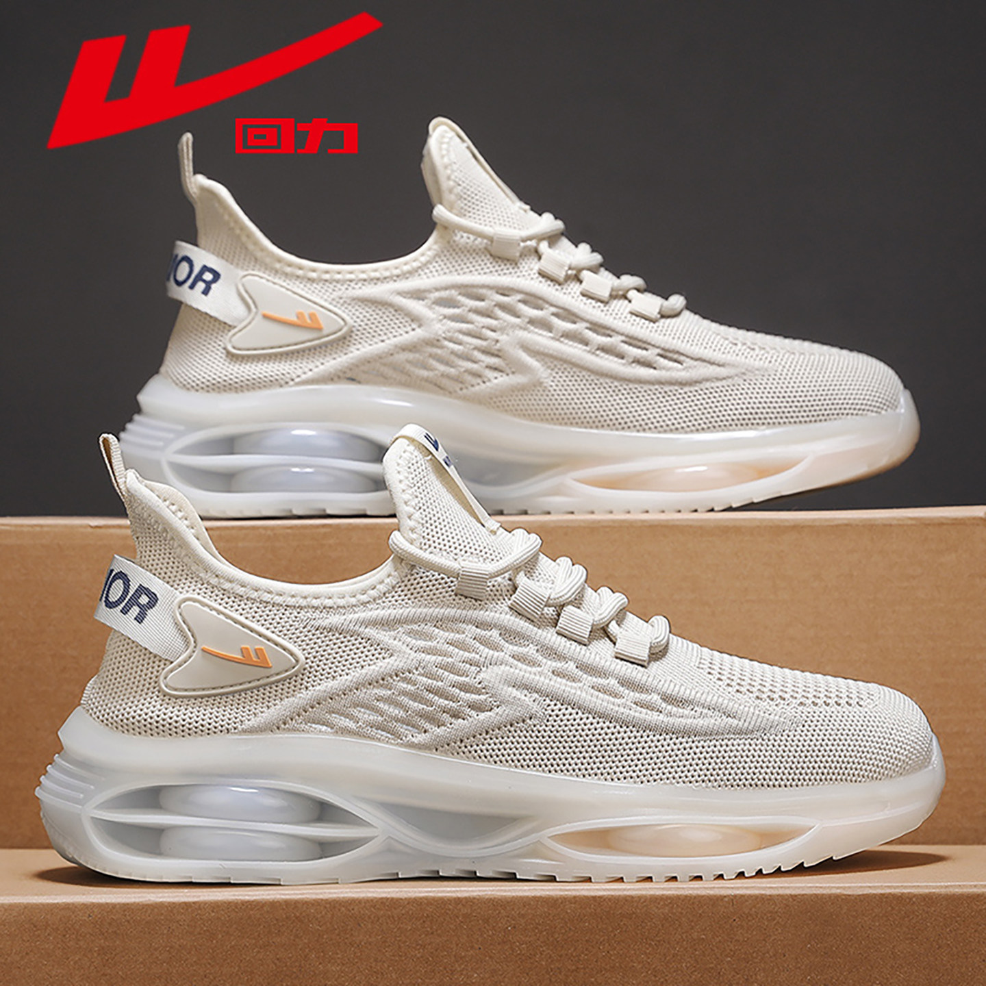 回力跑步鞋男2026新款夏季网面透气厚底运动鞋超轻减震气垫椰子鞋