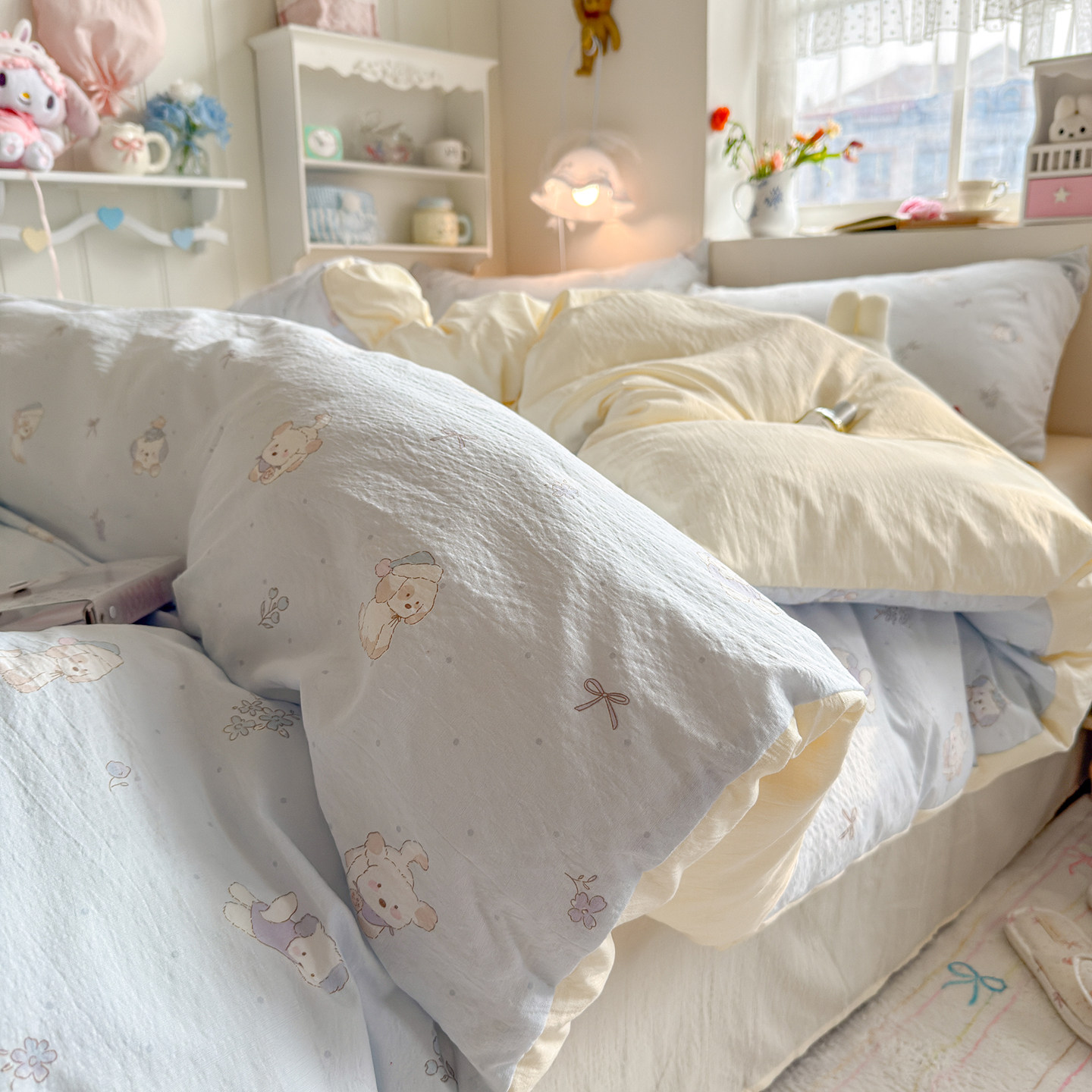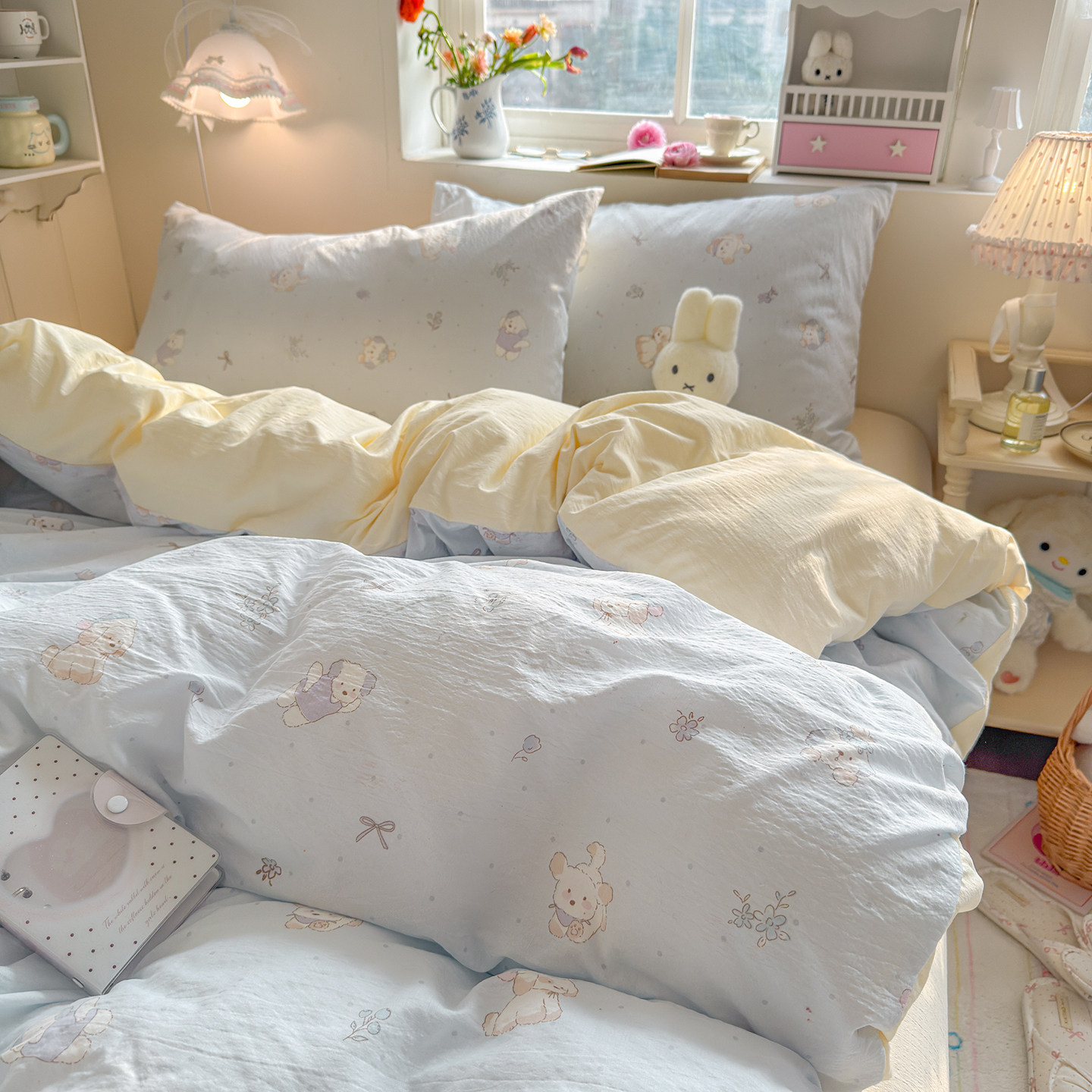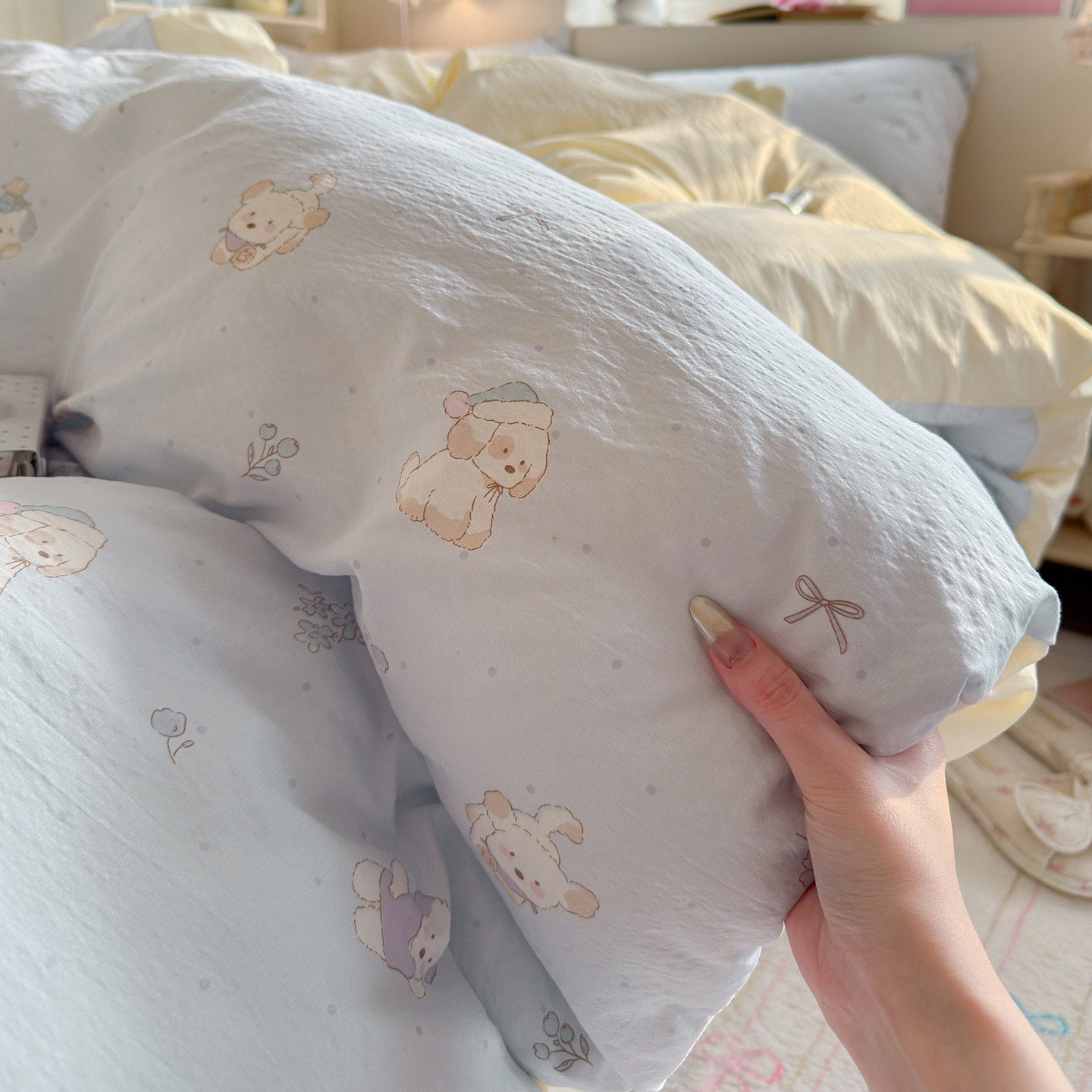 A类双层纱床上四件套纯棉全棉2026新款卡通床单件被套宿舍三件套4