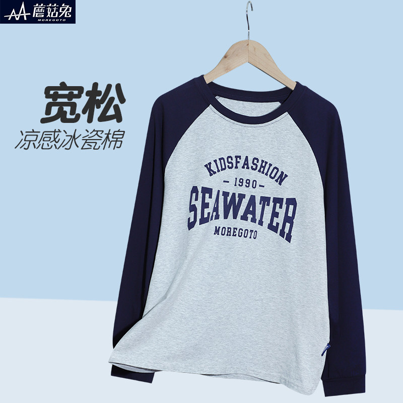 胖男童长袖T恤春秋薄款宽松加肥加大青少年初中生圆领打底衫潮衣