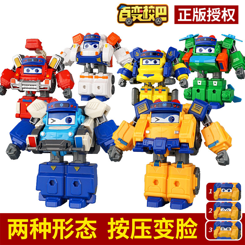 百变校巴变形机器人玩具校车合体套装趣味换变脸歌德男孩生日礼物