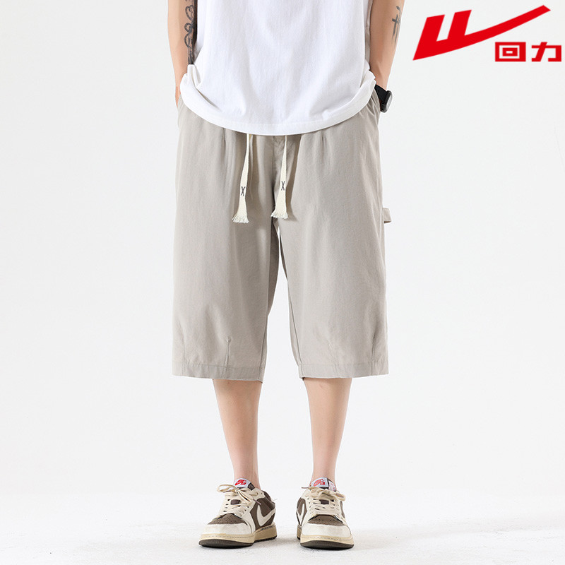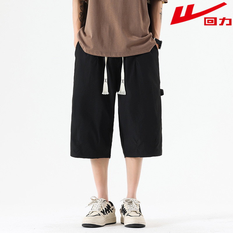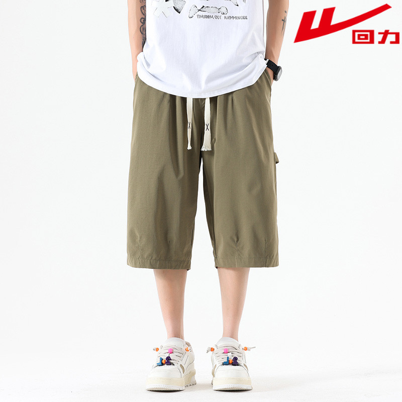 回力冰丝短裤男款夏季薄款美式七分裤宽松休闲直筒阔腿运动中裤潮
