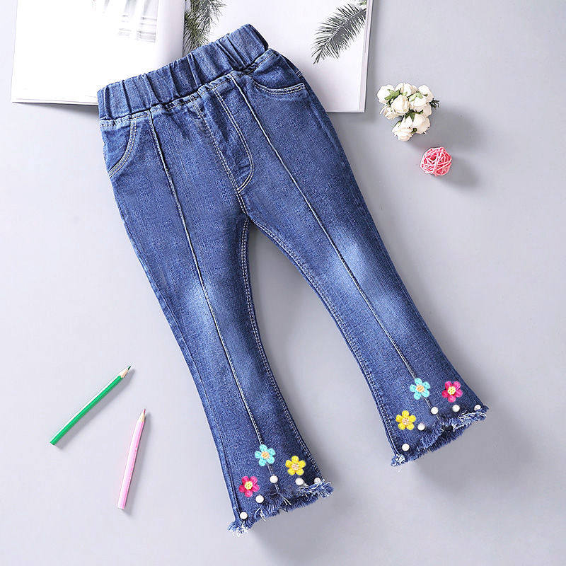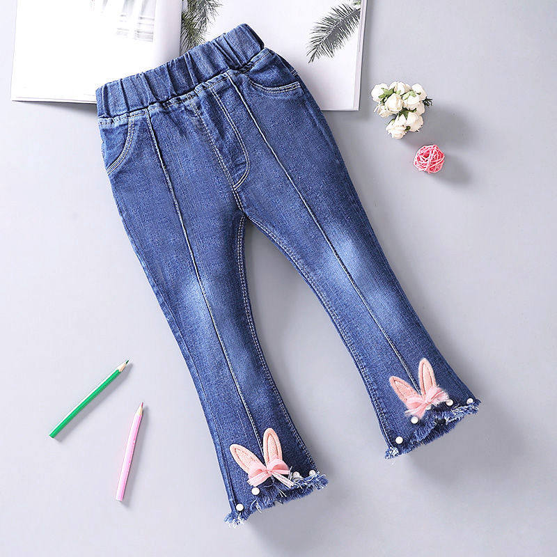 儿童裤子女童牛仔裤春秋外穿韩版喇叭裤新款女孩长裤秋季洋气童裤