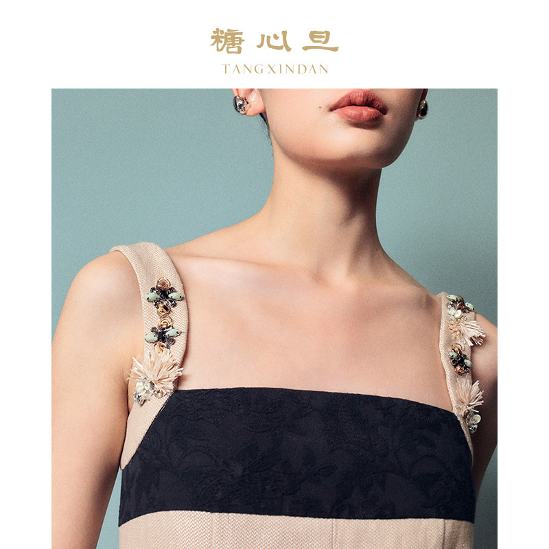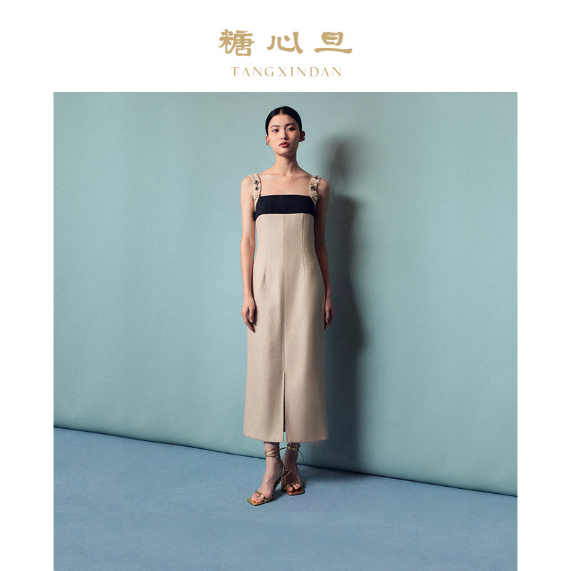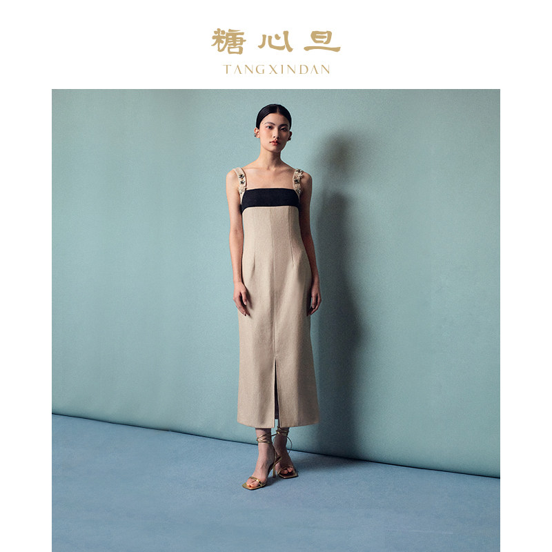 糖心旦TANGXINDAN清蝉 钉珠新中式连衣裙长裙修身